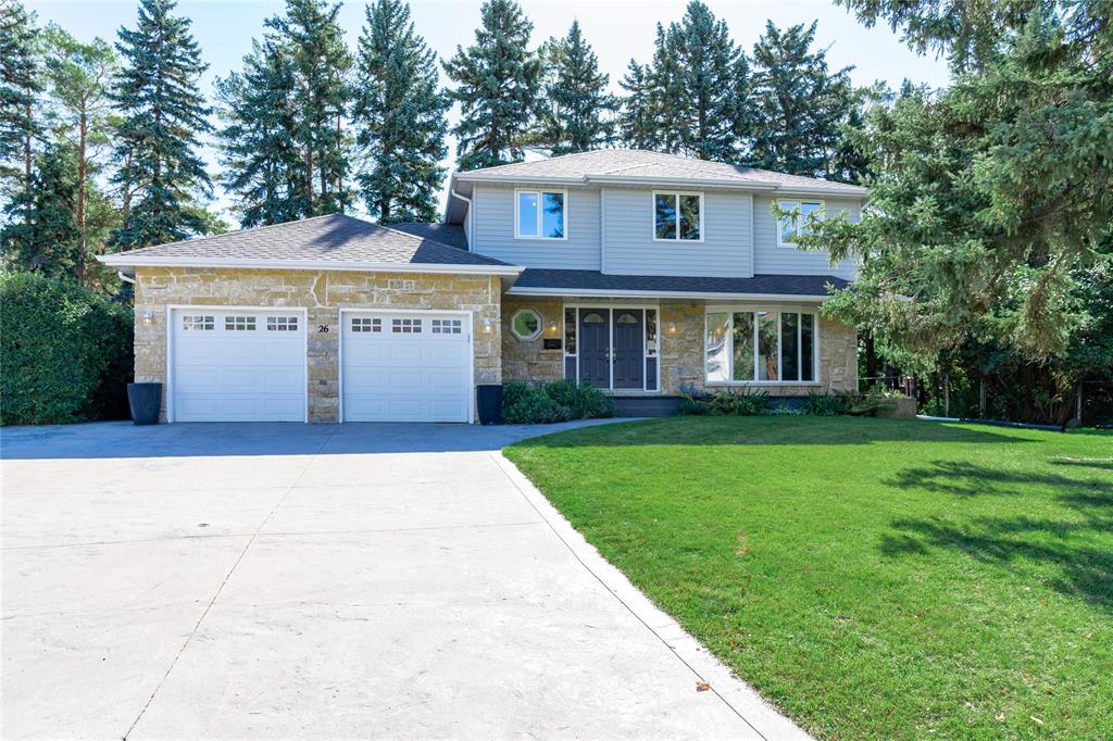 Offers as received. Welcome to 26 Longstone, a beautifully updated family home located in one of the city’s most desirable, tree-lined neighborhoods. This property impresses with its timeless stone exterior, double doors, oversized driveway, and a private yard framed by mature evergreens. Inside, a bright foyer leads to spacious living and dining areas filled with natural light. The modern kitchen offers crisp white cabinetry, stainless-steel appliances, and a perfect view of the backyard. The cozy family room features a refinished brick fireplace ideal for relaxed evenings at home. Upstairs, discover generous bedrooms, including a serene primary suite with a walk-in closet and a spa-inspired ensuite with a freestanding tub and tiled shower. Finished lower level offers an in-law suite with kitchen, living area, bedroom w/ walk-in closet, luxurious bath, and laundry. Recent upgrades include a high-efficiency furnace (2023) and new Central AC (2024) for year-round comfort. Outside, the large yard provides endless potential for gardening, play, or future outdoor living. Thoughtfully maintained and move-in ready, this home blends warmth, style, and an unbeatable location.