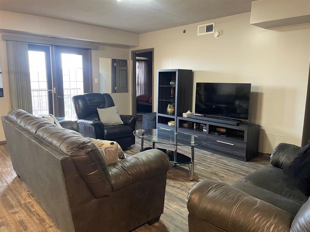 Welcome to this upgraded/well maintained unit. Newer flooring and light fixtures. Open concept, kitchen overlooks eating area/dining room and living room with patio doors out to a fantastic balcony. Large primary bedroom includes a 4 piece ensuite and walk-in closet, 2 piece bathroom for guests and in-suite laundry. Great building, well managed, elevator, one heated indoor and one outdoor stall included with this unit (second parking space valued $10,000-$12,000), lots of guest parking available and fitness facility.