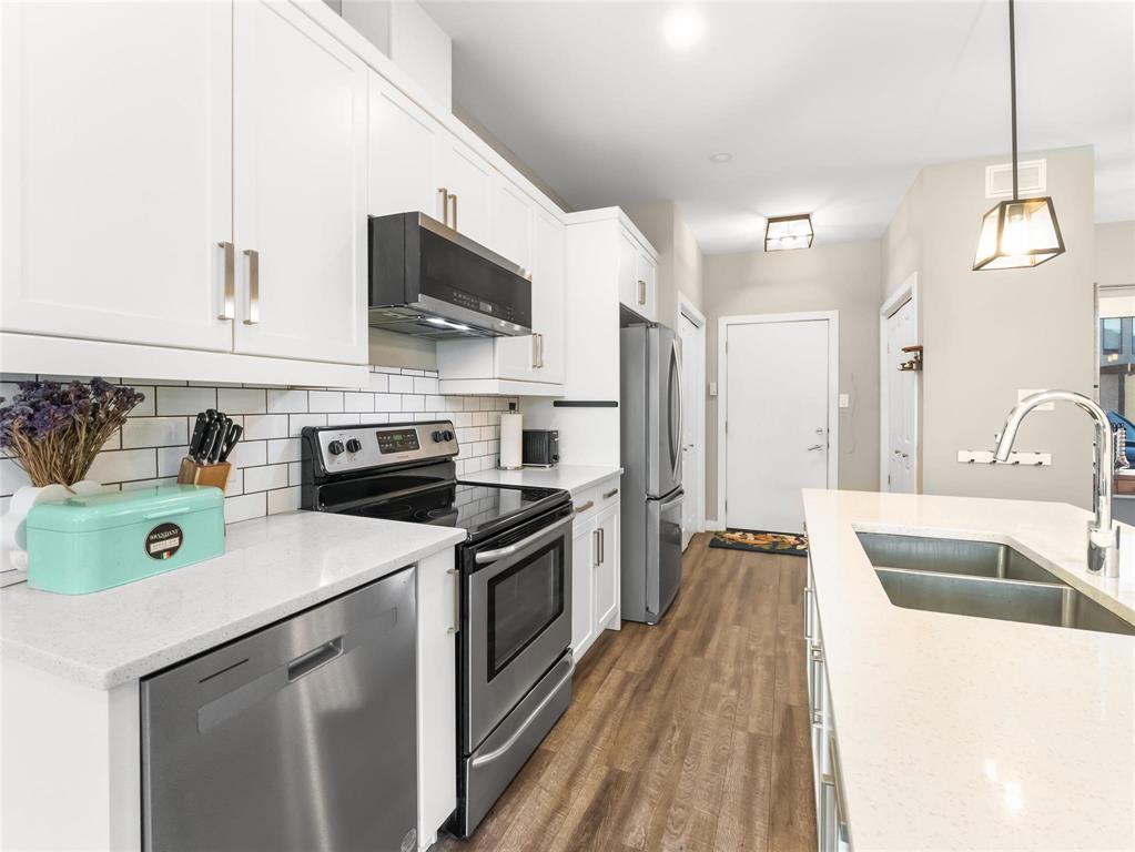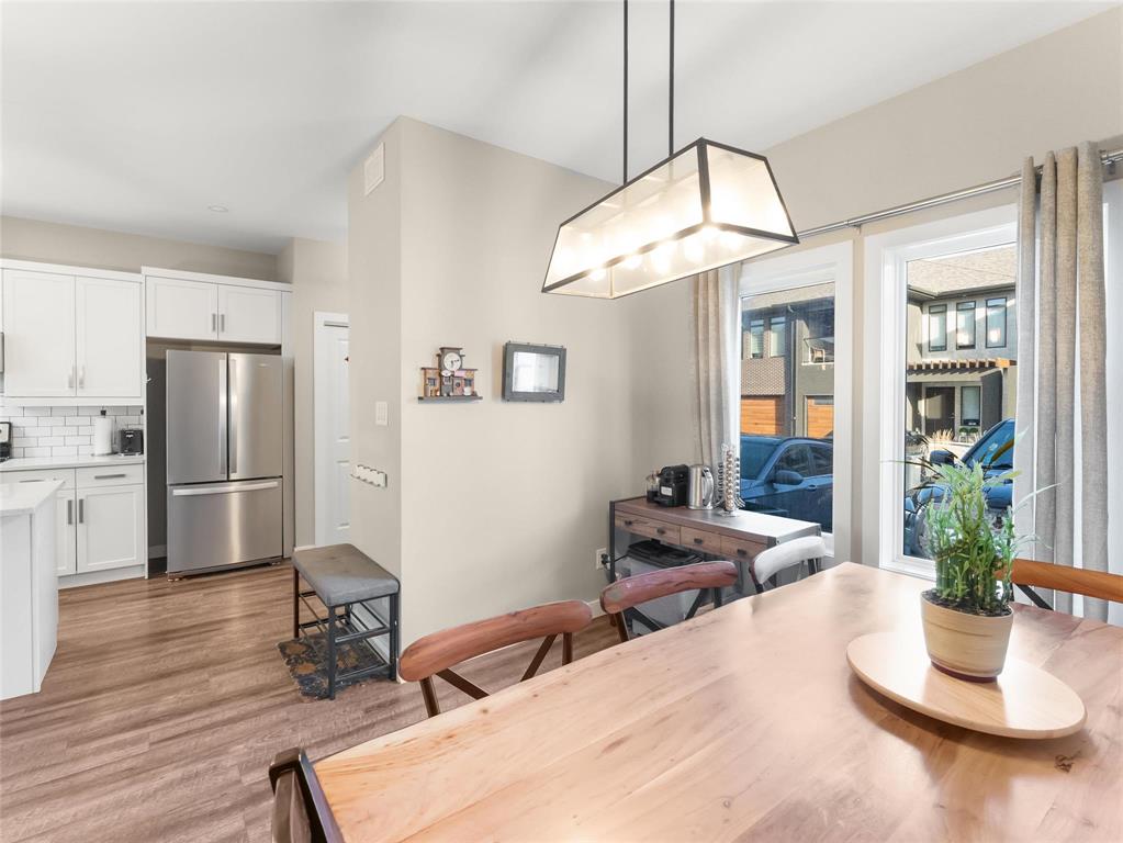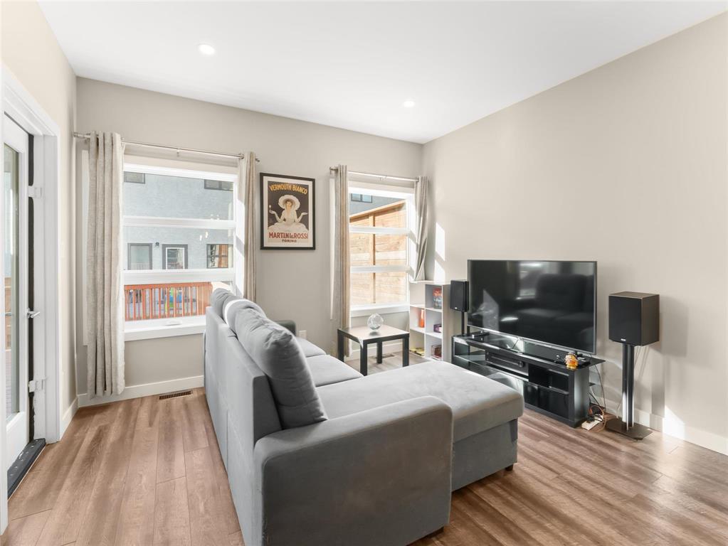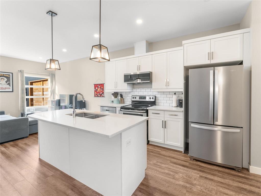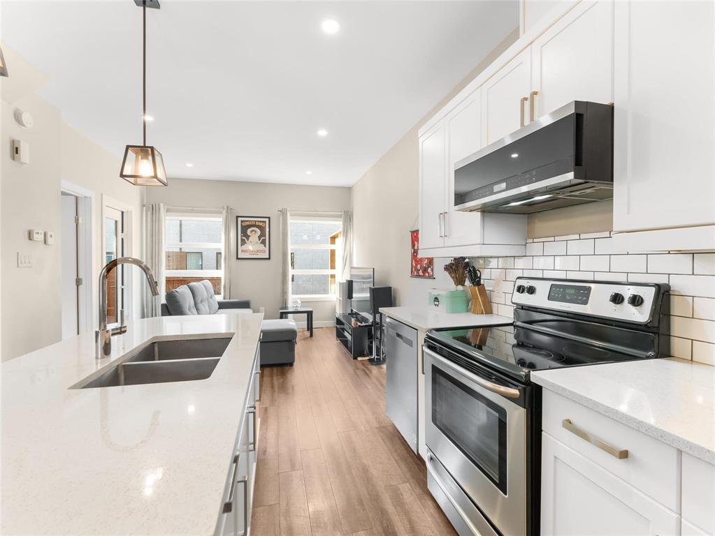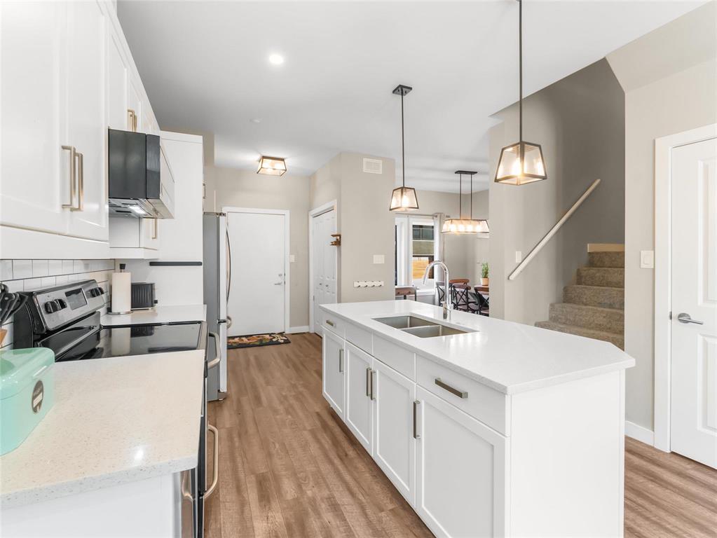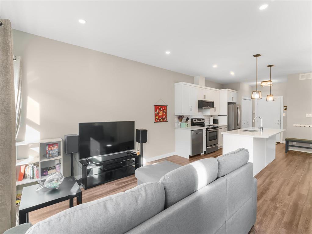 Beautifully maintained 3-bedroom, 2.5-bathroom townhouse built in 2017, offering 1,200 sq ft of modern living space. The main floor features 9 ft ceilings, laminate flooring, and an open-concept layout with a bright living and dining area leading to a fenced private patio. The contemporary kitchen includes stainless steel appliances, an oversized island, and ample storage. A convenient 2-piece bathroom completes the main level.