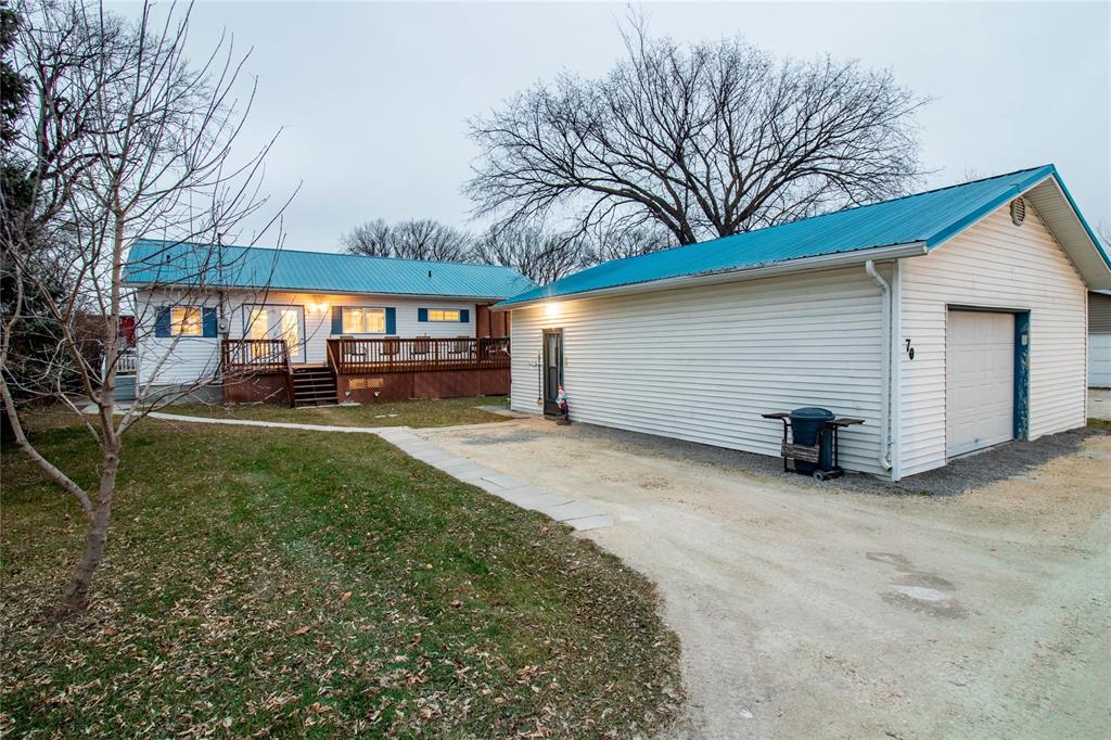 Town of Gimli-half a block north of Centre St and a two block walk to the town's main beach | Original owner home featuring 1408 sqft | Raised bungalow with full basement and detached garage situated on a 66'x124' lot | Covered front deck faces east; back yard deck faces west | Kitchen offers all stainless steel appliances with large island separating the Dining Room with garden door leading to back deck | Office could be used as nursery, craft room, den etc. | Main floor features 2.5 bathrooms, laundry room and large side foyer | Basement is partially finished and has great potential to add two or three bedrooms plus a recroom | Additional Features include: Logix foundation | Metal roofs | Vinyl exterior siding | 200 Amp electrical panel in home and garage | 240 Volt wiring in garage as well as a workbench | Garage door opener and remote | Home is heated using in-floor heat and additional baseboard heaters on main floor | Garage has roughed-in infloor heat | Property Zoned R1 + CC | Walking or biking distance to the town's shops, restaurants, library, banks, churches, all levels of schools, park, rec centre with hockey and curling rink, outdoor Aquatic Centre etc. Seller can offer 30 day possession .
