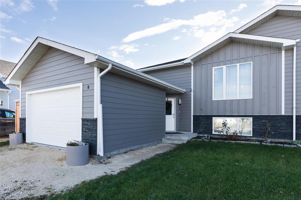 Welcome to 8 Acorn Ave. You are sure to be impressed with this modern 3 bedroom 2 bathroom home in highly sought after Lexington Village. Location is key being steps away from the school bus stop and less than 1 minute away from Steinbach's newest school. Walking in you are greeted with a large open concept living and dining room space, perfect for entertaining. Kitchen has high end black stainless appliances and leads to a huge deck that overlooks your fully fenced yard. 2 generous size bedrooms and a large 4 piece bathroom finish off the main level. The spa like primary bedroom downstairs is amazing with a humongous walk in closet, 2 piece ensuite and a gigantic roughed in walk-in shower with two showerheads, ready for your finishing touches. Family room and laundry room finish off the lower level. Hurry in to see this beautiful family home, you won't be disappointed.