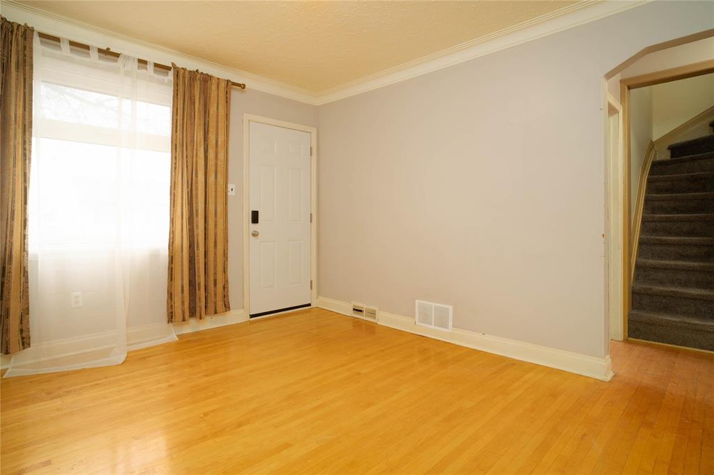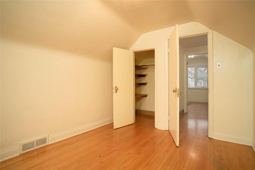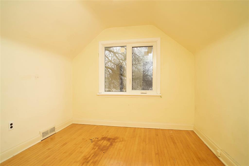 Offers as received. Welcome to this beautiful 4 bedroom plus den home featuring hardwood floors throughout and a bright, spacious layout. The kitchen offers tile backsplash and updated cabinetry adding a modern touch, flowing seamlessly into the living room creating a great floor plan. Patio doors through one of the bedrooms leading to a huge deck overlooking the fenced backyard and generous lot. Enjoy a full basement partially finished with a huge rec room, only requiring some flooring. An oversized single detached garage provides plenty of extra storage. Newer windows and the home has been refreshed with exterior touch-ups, including front steps for enhanced curb appeal. Conveniently located within walking distance to Chalmers Community Centre, schools of all levels, transit, and more. This move in ready home is one you won't want to miss!