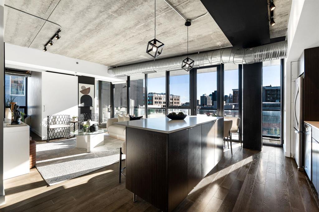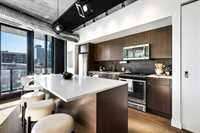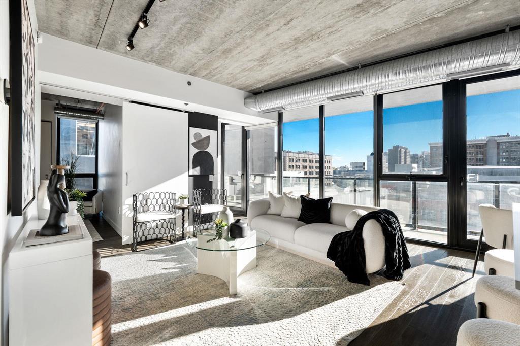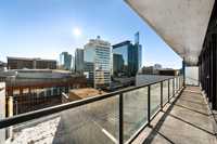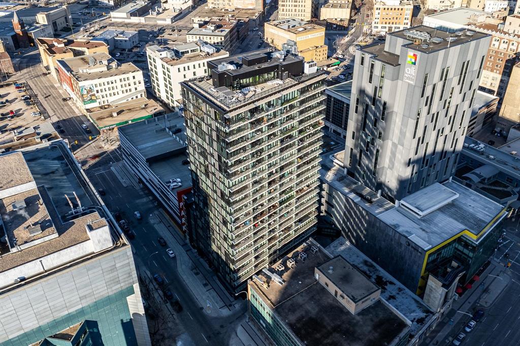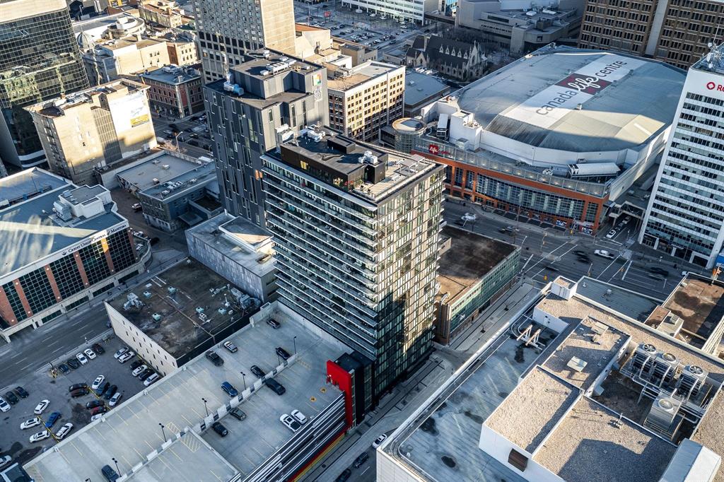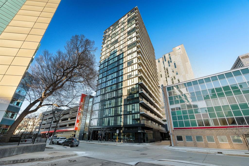 YOUR NEXT INVESTMENT PROPERTY- IDEAL FOR SHORT TERM RENTRAL/AIR BNB or EXPERIENCE ELEVATED URBAN LIVING IN ONE OF WINNIPEGS NEWEST HIGH RISES IN CITY CENTRE! Welcome to the Glass House Skylofts! This Pet-Friendly corner suite offers panoramic views of downtown, overlooking the Canada Life Centre! This full concrete construction suite features 2-bedroom's with sunny south-facing views from its floor-to-ceiling windows or its sprawling 45+ ft. balcony! Offering endless amenities incl; A rooftop patio and sky lounge, 1,500 sq. ft. fitness centre, theatre room, and secure parkade parking. Inside, enjoy its spacious open-concept layout with soaring ceilings, hardwood flooring, designer kitchen, and exposed concrete and steel accents for a true loft-style feel. Ideal for executive living or investment, this unit includes in-suite laundry, secure key-fob access, on-site security, and direct indoor skywalk access to dining, shopping, and entertainment. Additional owner upgrades incl; Private gated parkade parking stall ($25K value) and secure in-door storage locker ($5K value). Immediate possession available & priced below assessed value for quick sale! Must be seen to be appreciated, book your showing today!