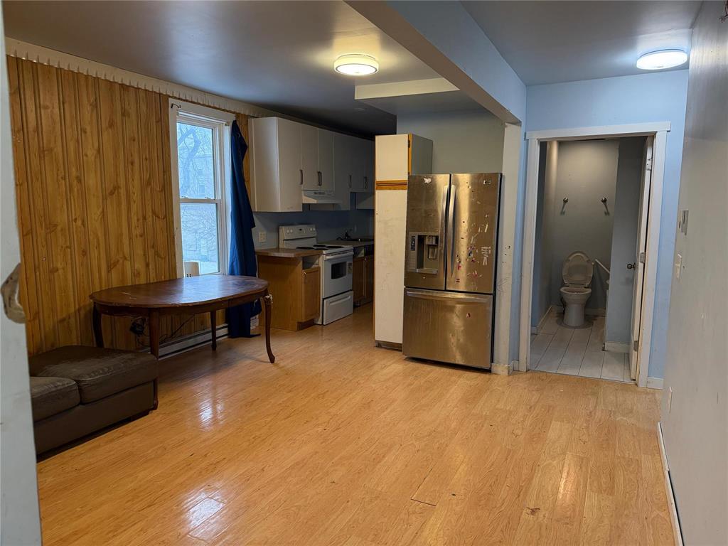 Property needs: M Flr heat is now off (Front of Furnace is open, was working) M Flr toilets/tub have ice, but Plex pluming should be saveable, 2nd & 3rd Flrs are warm with working Baseboard heaters, Lots of tenant wear & tear repairs, cosmetics, appliance repairs, & labour.