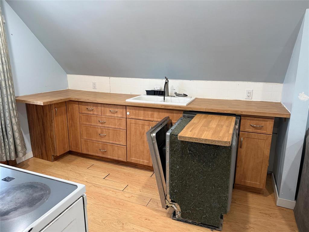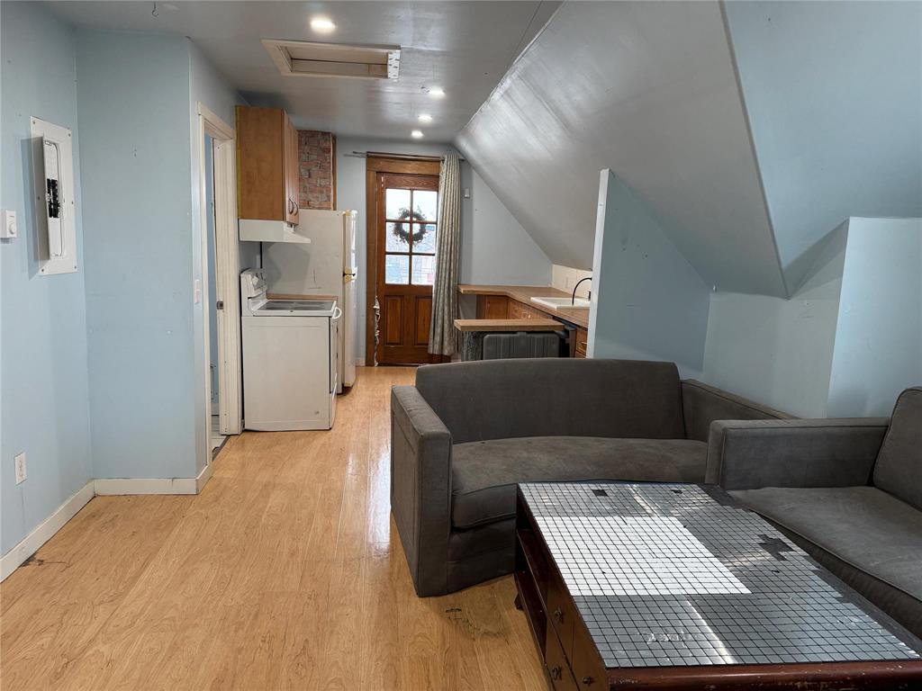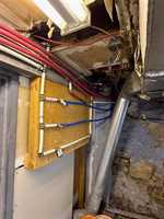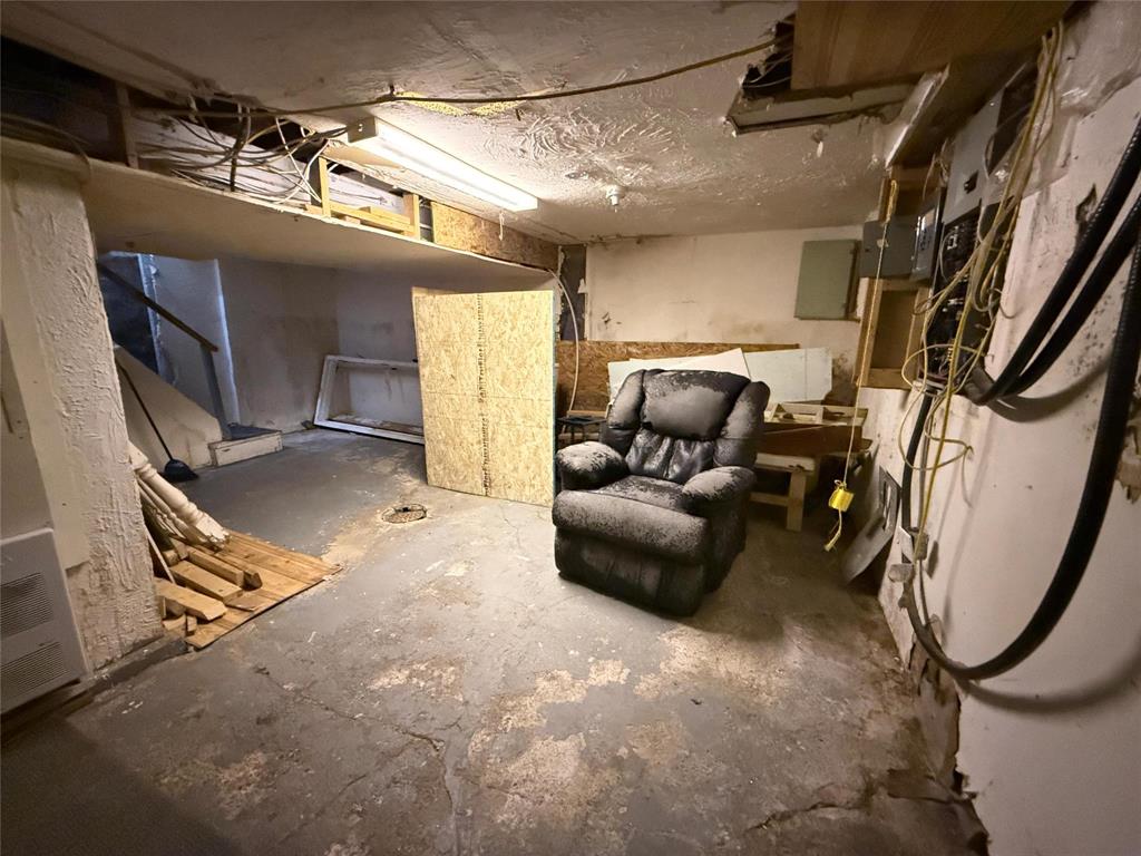 High Basement had a Landlord Suite (Not Legal) Kitchen, Bedrm, Storage,. Free standing (open) Toilet. Wall Heater is running, Main Panel feeds 3 Panels/suite.