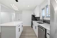 Upgrades include windows, flooring, remodelled kitchen, updated bathrooms, exterior stucco, soffits/fascia/gutters, interior/exterior paint, the 2025 garage, and the 2025 entertainment unit — all completed to create a modern, move-in-ready home. Mechanical: new HE furnace and new hot water tank. Close to schools, parks, transit, and amenities. Buyers to do their own due diligence. Some photos may be virtually staged.