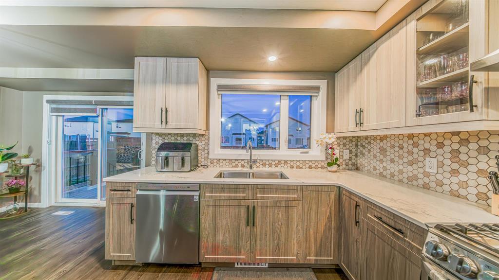 OH 30th Nov - Sun(2pm-4pm).Welcome to 9 Park Lane, a stunning 2,170 sq. ft. home located in the highly sought-after Parkview Pointe community. This beautifully designed residence features 5 spacious bedrooms, including one conveniently located on the main floor with a full bathroom—perfect for guests or multi-generational living. Spacious kitchen with gas stove and high end appliances. The home offers two generous living areas, one with an impressive open-to-below ceiling, and a massive kitchen ideal for entertaining. Three decent size bedrooms with one full bath and walk in laundry on 2nd floor. Master bedroom is huge with walk-in closet and standing shower ensuite. The professionally landscaped yard includes a backyard patio and cozy fire pit area, perfect for outdoor gatherings. The exterior showcases a stylish combination of wooden siding and stucco, blending elegance with durability. Parkview Pointe offers a serene lifestyle surrounded by scenic lakes, parks, and walking trails. A new commercial plaza is currently under construction within walking distance, and the brand new Costco is just a few minutes’ drive away—making this home the perfect blend of comfort, convenience, and community living.