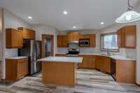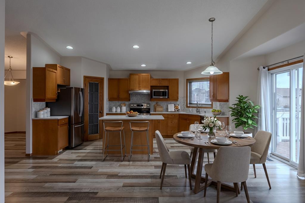 1822 sq ft 3+ bedroom home. 3 baths, newer flooring, freshly painted, newer roof, some updated appliances, very clean... move in ready home! This is the time to settle your family into this spacious home. Finished basement with games area, pool table, main floor has Living room & dining room area, as well as Family room with fireplace, shelving dinette area & garden door to east facing back yard deck! Quartz counters & ceramic back splash in kitchen, new stove, Hood fan, Dishwasher & Fridge & like new condition. Walk-in pantry & Island area helps to define the kitchen work area! Staircase leads up to the primary bedroom where there is a walk-in closet, spacious 3 piece plus ensuite & a very generous size bedroom / retreat area! This all wraps up with newer shingles 2025, some newer flooring 2025, neutral paint colors, Central vac & accessories, Pool table & accessories & C/Air conditioning along with a floor plan that offers the whole family some designated quiet space! Concrete drive, insulated & painted double garage... Come by & see for yourself all that this home has to offer!