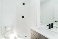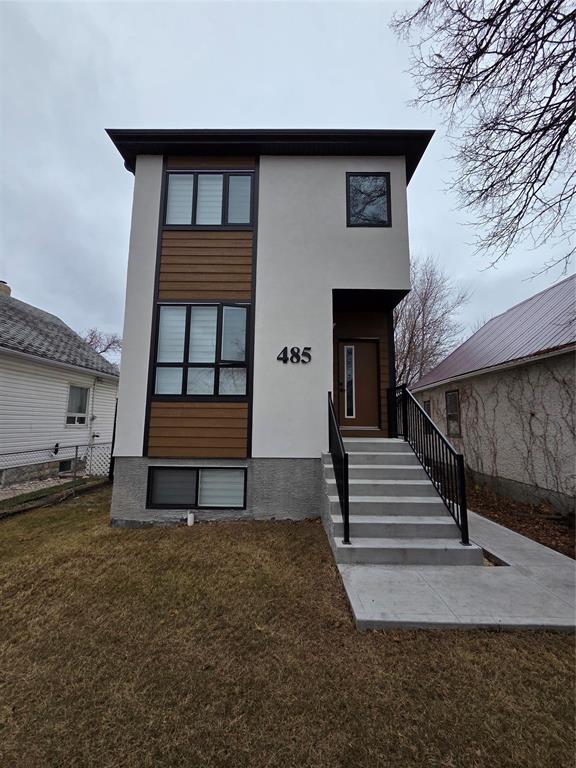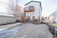 Offer Presentation: December 2, 2025 Evening. Two-storey Duplex offers over 2,100 sq.ft. living space & includes a legal secondary suite on the second floor—ideal as an investment. Total rental income: $3500 + utilities per month. Each unit is equipped with its own utilities & laundry for added convenience. The main level welcomes you with a bright, open-concept layout featuring a spacious living room, a centrally positioned kitchen with modern cabinetry & quartz countertops, & a dining area perfect for family gatherings or hosting guests. This unit includes three bedrooms, two full bathrooms, & an in-suite laundry area. The upper suite has a private entrance & offers two comfortable bedrooms, a full bathroom, an eat-in kitchen, & a generous living space with access to its own balcony. Quality finishes are found throughout the home, including 9-ft ceilings on the main floor and basement, vinyl plank flooring, black trim details, high-efficiency windows & doors, HRV, high efficiency furnace, upgraded cabinetry, & air conditioning for both units. Exterior features include rear decks for both suites, a concrete walkway, gravel parking pad, & construction on piles for long-term durability.