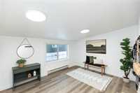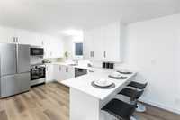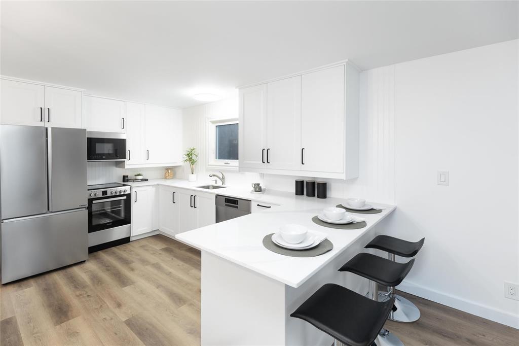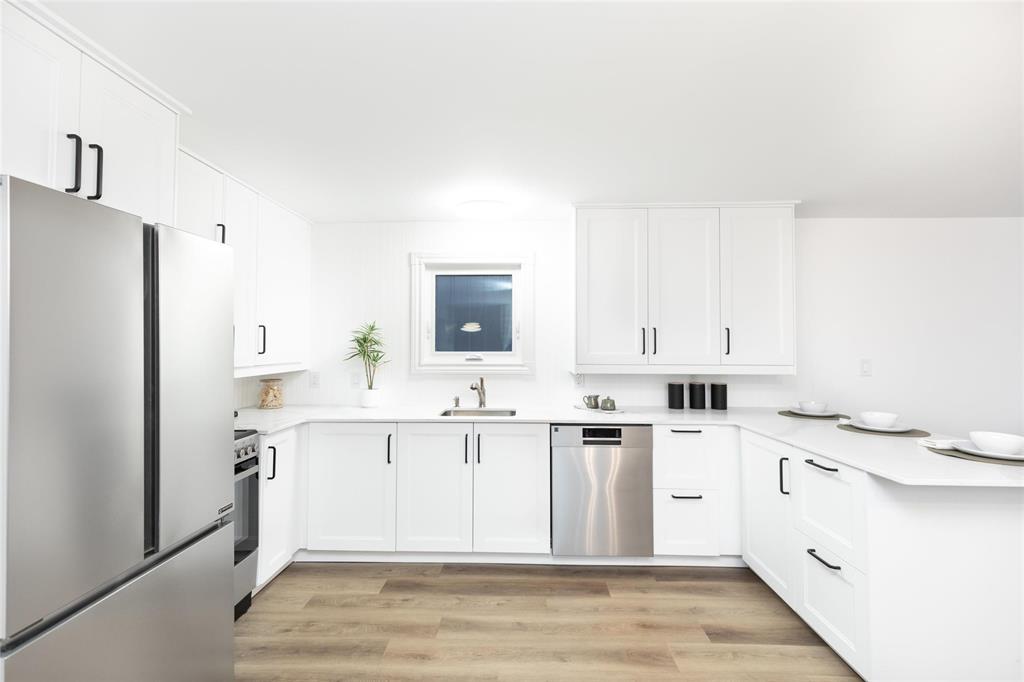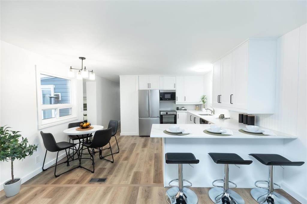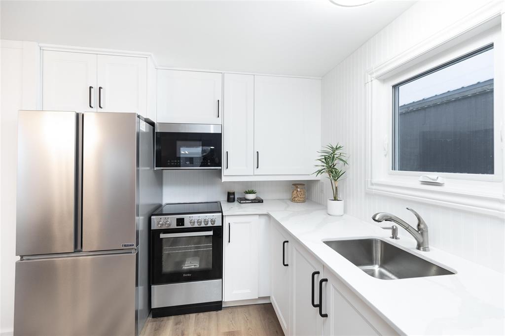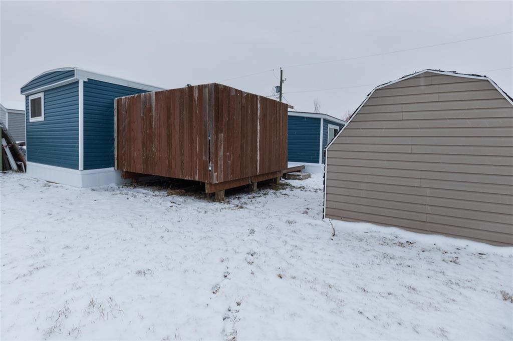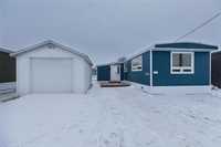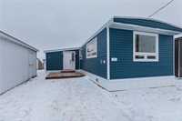 Welcome to this fully renovated home - so many upgrades that it's like new! Enjoy energy efficiency with triple pane windows, spray foam plus Halo Exterra graphite insulation, new siding, and insulated skirting with automatic venting. Step into a spacious entrance to find new luxury vinyl plank flooring, drywall and paint, and all new appliances! The kitchen features quartz countertops and white cupboards with unique pull-out lazy susans to maximize corner space, and you will appreciate the extra seating at the peninsula. The living room is bright and welcoming with two large windows. Down the hall, you'll find 3 comfortable bedrooms, a laundry area, and a roomy bathroom with dual sinks - also with quartz countertop. Your back door leads to a 2-tiered deck with privacy screening. 8x12 storage shed is perfect for yard tools & toys, and you can use the 12 x 20 garage as a workshop or for indoor parking this winter! Located close to the school and recreation centre. Don't miss this one - call today to book your personal tour.
