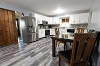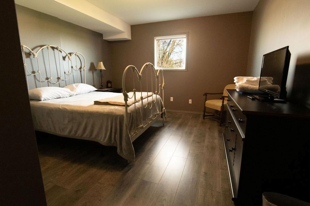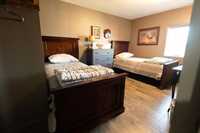 Beautiful whole-house retreat in Marchand, operating as a successful Airbnb since 2022 with a 4.97-star rating and 94 reviews. This spacious property sleeps 16+ guests with 7 bedrooms, 3 - 3pc bathrooms, 2 - 2pc bathrooms, plus huge kitchen & dining area connected to huge wrap second story decks. Fully furnished attached manager’s suite. Enjoy the games room with pool table, smart TVs, Wi-Fi, coin-op laundry, and a large fenced backyard with a fire pit. Insulated heated garage, storage outbuildings, and 65' x 30' Quonset offer exceptional space and flexibility. Perfect for corporate retreats, family gatherings, golf groups, snowmobile/ATV/SxS groups and hunting trips. A large circular driveway provides ample trailer parking. Located just minutes from the extensive Sandilands trail system. Gas station and store across the street and a vendor/bar next door. See supplements for income and expense details plus more info. 2 Titles for property.