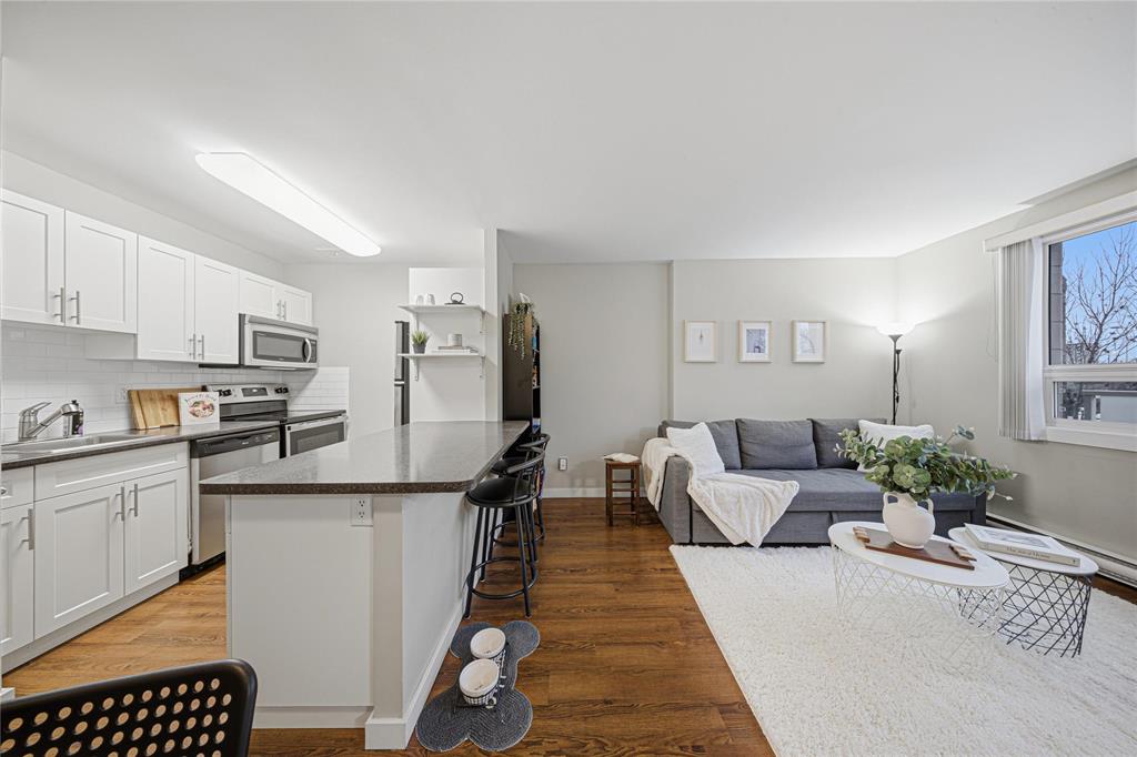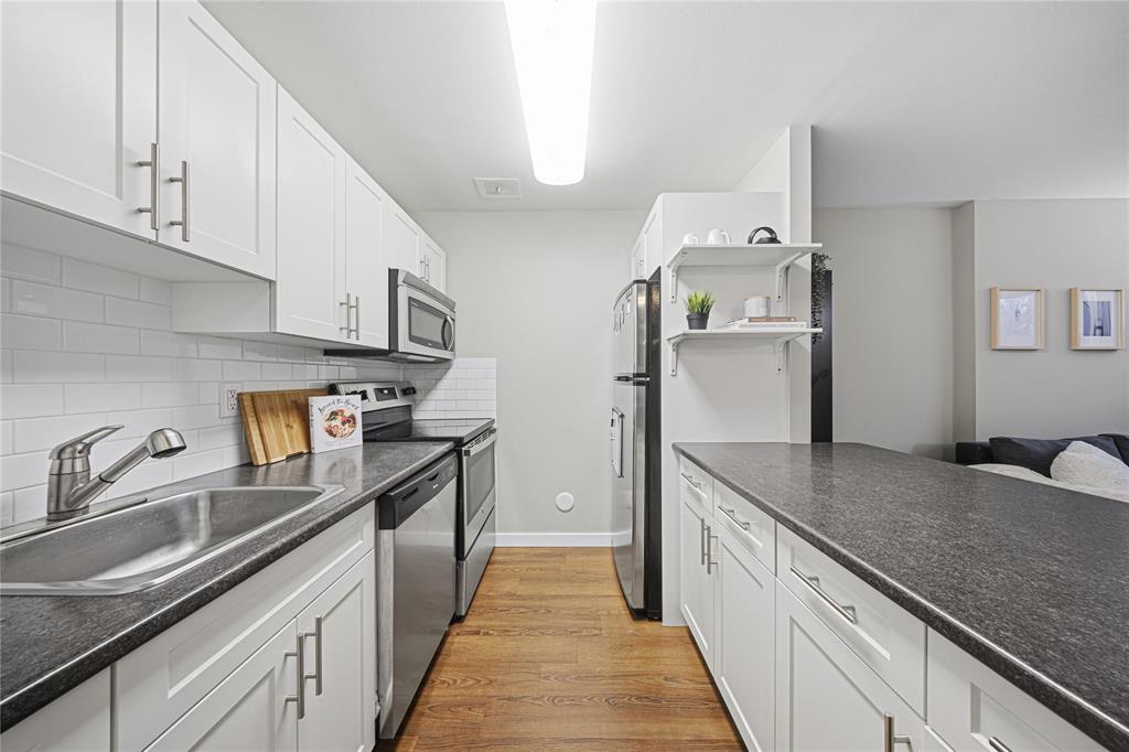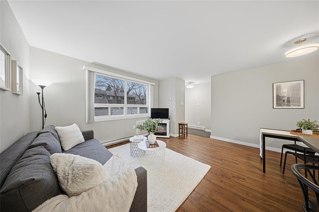 SS Now. Offers as received. Measurements +/- jogs. Why rent when you can own? This lovely two-bedroom, two-storey condo overlooks the beautiful outdoor pool — perfect for enjoying those hot summer days. The main floor offers an open-concept kitchen, living, and dining area, along with a good-sized internal storage room. The second level features two comfortable bedrooms and a full 4-piece bathroom with a convenient stackable washer and dryer. The complex is pet friendly, has low condo fees of $388.60 (including water), and is ideally located close to shopping, schools, restaurants, transit, and more. Parking stall #61, included with the condo, is a short walk away and can be seen directly from the unit for added convenience and peace of mind. At $204,900, this unit is move-in ready and priced to sell — call today!