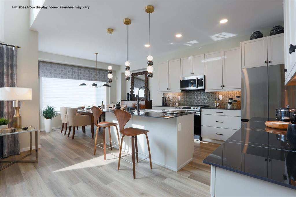 The Hazel 1889 SF of living! 4 bedrooms comes with double attached garage and 3 full bathrooms. The main floor has 9 ft ceilings and the Great Room features open to above with a 17 ft ceilings plus glass inserts over looking the great room & a Dining area w/garden door to your future deck. The kitchen w/large island SS dishwasher, & Soho style cabinetry 41" upper cabinets, SS Microwave OTR hoodfan, LED disc lighting in kitchen & pendant lights over the island. The main floor also features a bedroom & full bathroom. Vinyl plank flooring on the main floor except for the bedroom to be carpet. Upstairs is 3 more bedrooms & 2 full bathrooms & 2nd floor laundry including the Primary bedroom ensuite with standing shower with glass sliding doors. 32 oz 7lb carpet upgrade. Home is to be built with show home in another area to view by appointment. Call for more information. No escalation. Photos from display home, finishes may vary.