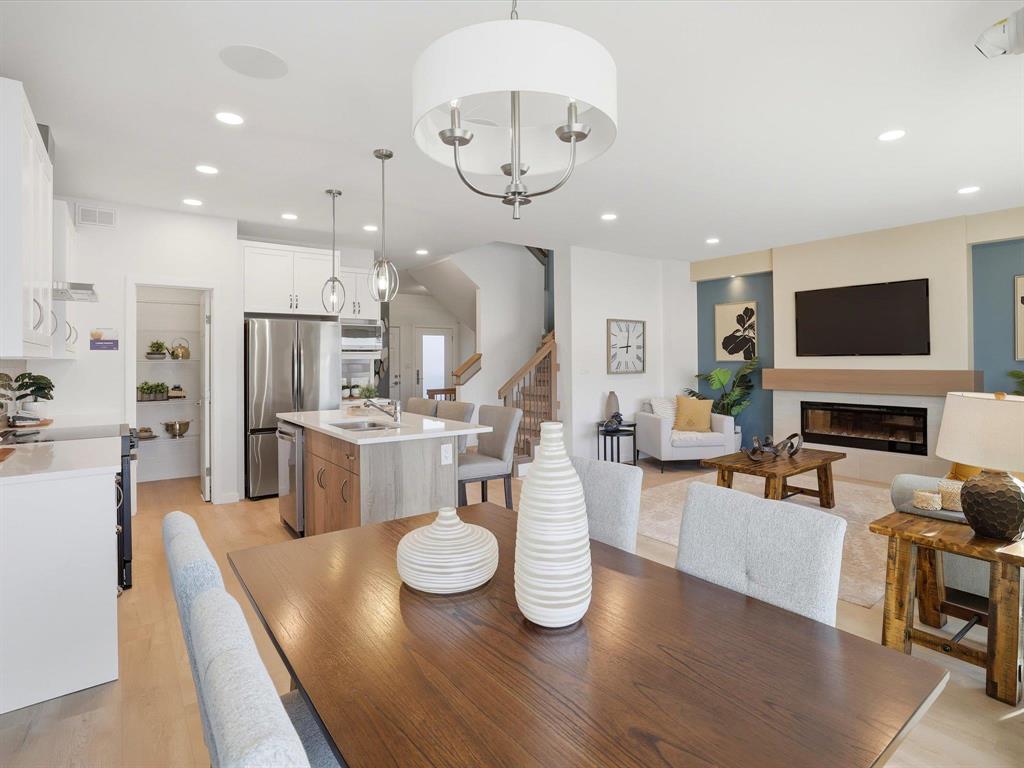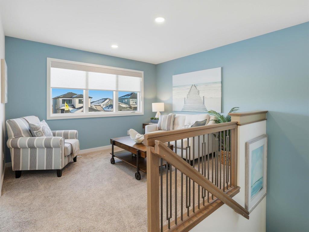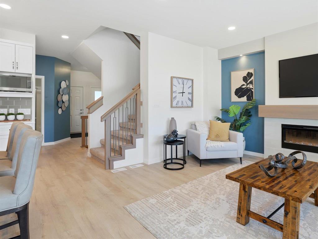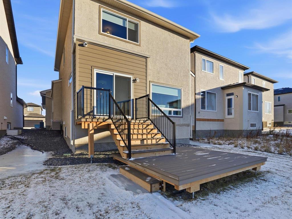This is your chance to own a Randall show home. Fully loaded with tons of standard features. Private front entrance leads into open great room plan with island kitchen. Silstone countertop with undermount stainless double sink and pull out faucet. Large pantry for extra storage. Decor pendant lights, tiled backsplash and designer chimney style hood fan complement this kitchen. Large dinette area leads to patio doors and composite tiered deck which backs on to green space. Great room with electric tiled fireplace with stained oak accents and metal spindle v grooved handrails. Upstairs features 3 bedrooms with generous sized loft. Upper floor laundry room for convenience. Large WICC with 3 piece ensuite and double wide shower with glass doors. Fully landscaped with sprinkler system, large garage, workshop, garage door opener, wide concrete drive and piled sidewalk. Side door for easy access to basement gives endless possibilities for development. Appliances, alarm, central air conditioning are included. Book your showing today.