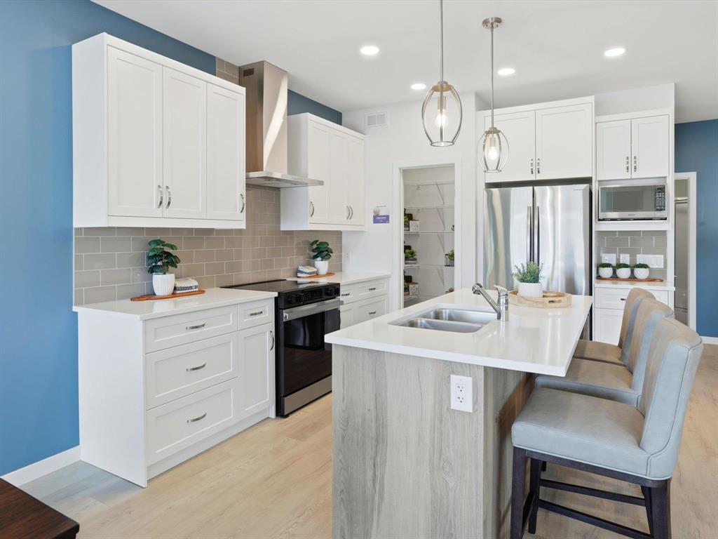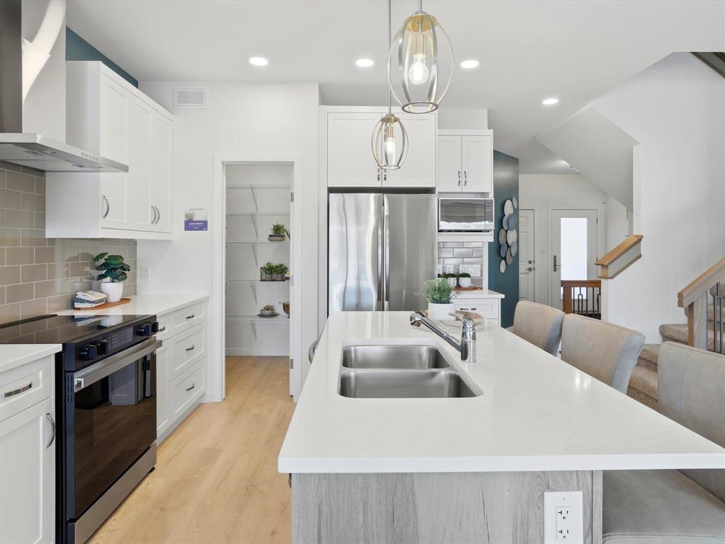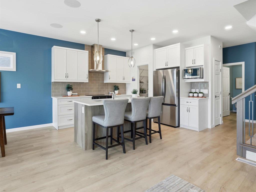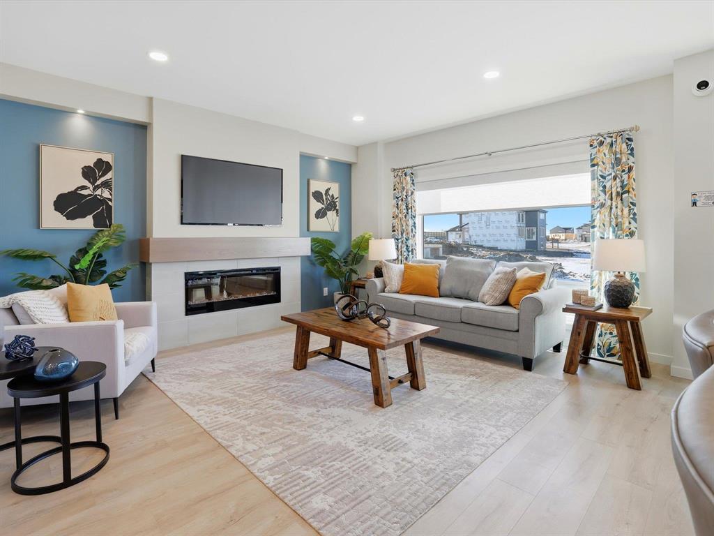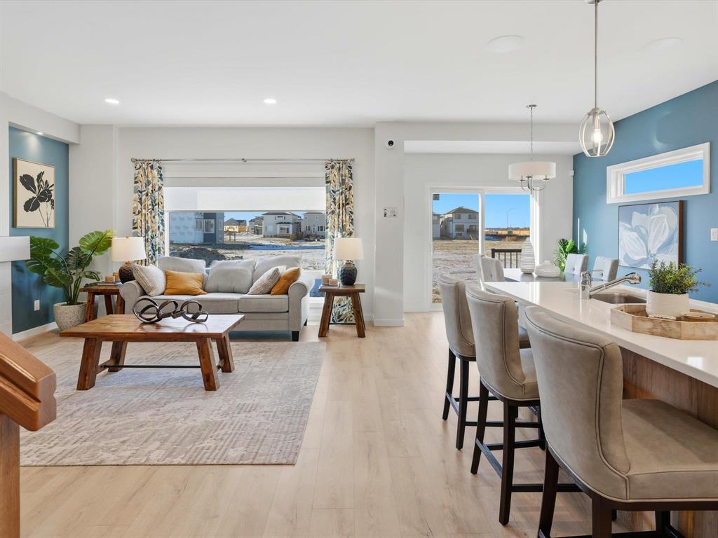 This is your chance to own a Randall show home. Fully loaded with tons of standard features. Private front entrance leads into open great room plan with island kitchen. Silstone countertop with undermount stainless double sink and pull out faucet. Large pantry for extra storage. Decor pendant lights, tiled backsplash and designer chimney style hood fan complement this kitchen. Large dinette area leads to patio doors and composite tiered deck which backs on to green space. Great room with electric tiled fireplace with stained oak accents and metal spindle v grooved handrails. Upstairs features 3 bedrooms with generous sized loft. Upper floor laundry room for convenience. Large WICC with 3 piece ensuite and double wide shower with glass doors. Fully landscaped with sprinkler system, large garage, workshop, garage door opener, wide concrete drive and piled sidewalk. Side door for easy access to basement gives endless possibilities for development. Appliances, alarm, central air conditioning are included. Book your showing today.