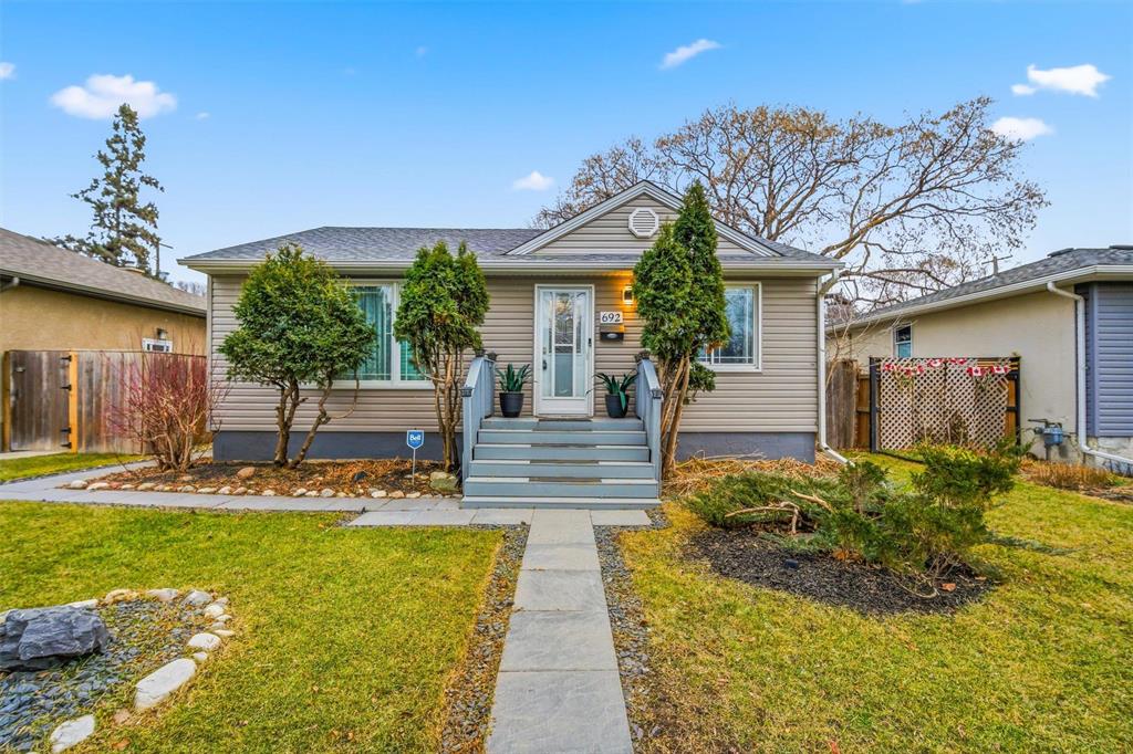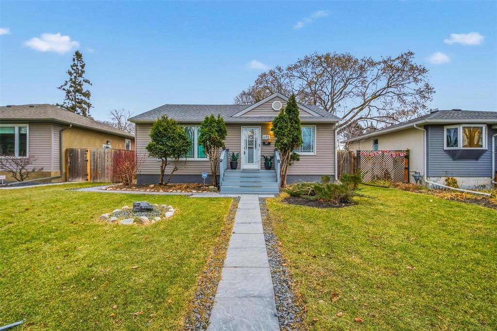 Showings Start Tuesday | Offers Monday, December 8th | Open House Sat & Sun Dec 6 & 7, 12-2pm | Beautifully maintained 2-bedroom bungalow in a prime mid-block River Heights location! This home is clean, updated, and truly move-in ready. Enjoy a fully redone eat-in kitchen featuring wood shaker-style cabinetry, quartz countertops, tile backsplash, and tile flooring. Updates throughout include: Roof/soffits/fascia (2020), high-efficiency furnace (2017), central A/C (2017), hot water tank (2018), dishwasher (2018), refinished gleaming oak hardwood floors (2018), and an updated bathroom with tile shower, updated vanity and newer windows. Freshly painted interior with neutral tones and crisp white trim. The spacious living room features hardwoods and a charming cove ceiling. Both bedrooms are a great size with refinished hardwood floors. The full basement is insulated, drywalled, and ready for your future development. It even has roxul sound insulation in the ceilings! Outside is a private, fenced 45' x 104' lot with a single detached garage. Five appliances included. A fantastic opportunity in one of Winnipeg’s most desirable neighbourhoods!