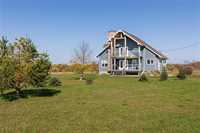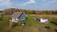 Escape to nature with this charming 1.5 story A-frame home set on 8 pristine acres of riverfront property, where rustic character meets peaceful country living. Wrapped in durable hardy board siding with attractive stone accents, this home offers timeless curb appeal and low-maintenance exterior living. Step inside to be greeted by soaring ceilings, exposed wood details, and large windows that flood the home with natural light while framing beautiful views of the surrounding landscape and river beyond. The unique A-frame design includes a beautiful balcony. The thoughtful layout provides a cozy yet functional living space for families and friends. Step outside to enjoy composite decking at both the front and side of the home. A shed and chicken coop are included, giving hobby farmers or outdoor enthusiasts plenty of options for storage and projects. With direct riverfront access, you’ll have endless opportunities for fishing, canoeing, or simply soaking in the tranquility of your private retreat. Whether you’re searching for a family acreage, hobby farm, or riverside getaway, this property offers it all!
