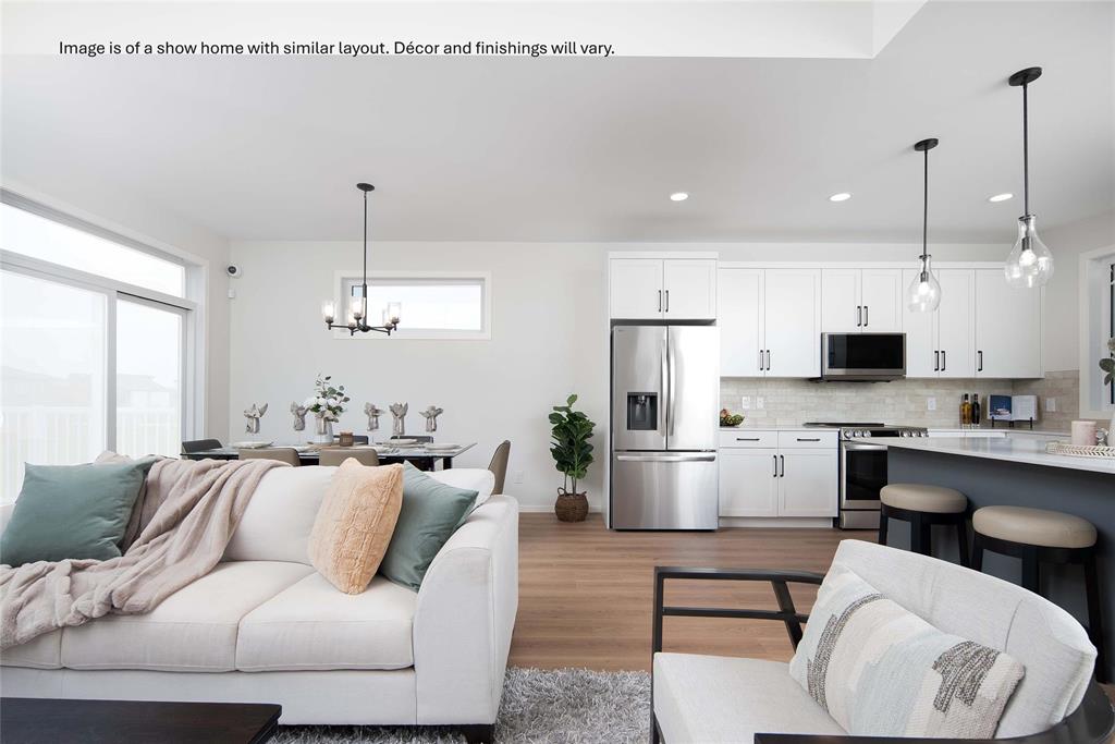 NEW PRICE on this wonderful new bungalow by A&S Homes . . . and if you are a FIRST TIME BUYER you qualify for the proposed FIRST TIME HOME BUYERS GST REBATE, further reducing the price by over $26,000. At 1427sf, this home offers a spacious yet cozy design, with 9' & 11' ceilings and exceptional details inside and out. The deluxe kitchen features a large island with breakfast bar, quartz counters, front facing window and an abundance of upgraded maple cabinetry. This open layout allows your new KT to flow seamlessly into the dining & great room areas, making it the perfect space for entertaining or simply relaxing with family. The dining area has large patio doors to a 58' x 120' east facing rear yard. The great room features a beautiful tiled fireplace w/built-in shelving. Laminate flooring in KT, dining area, great room, halls & foyer. The primary BR is a private retreat, w/walk-in closet & ensuite with 5' shower. Large east facing windows throughout allows for tons of natural light. The large unfinished basement has been configured to optimize future development options. Oversized 24' x 24' double attached garage. Estimated completion date, Feb 15/26. Call to book your private viewing today !!