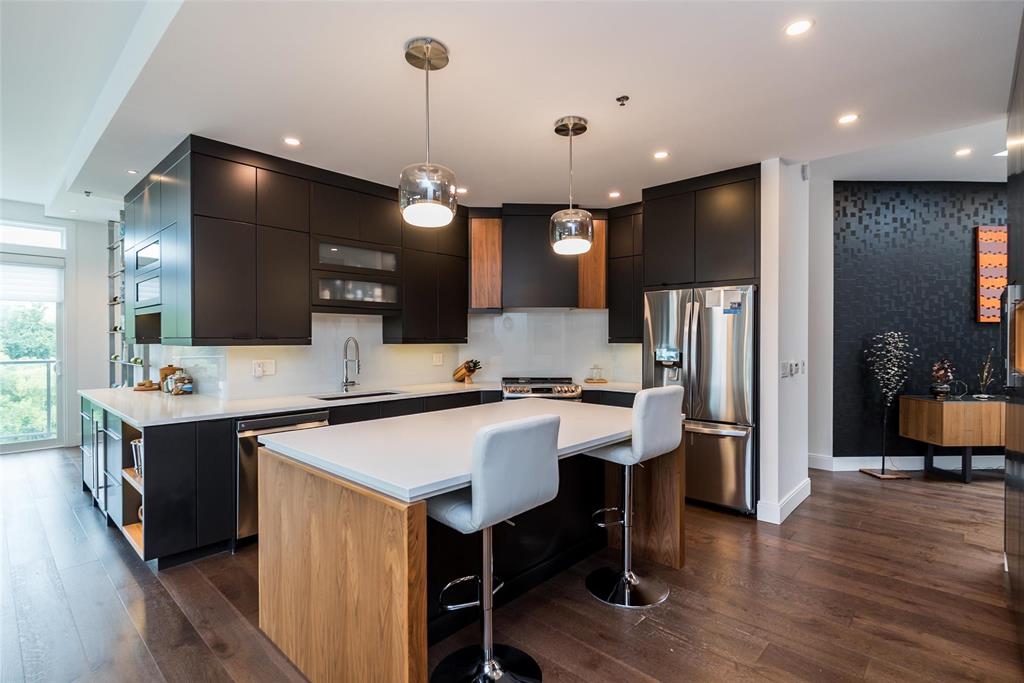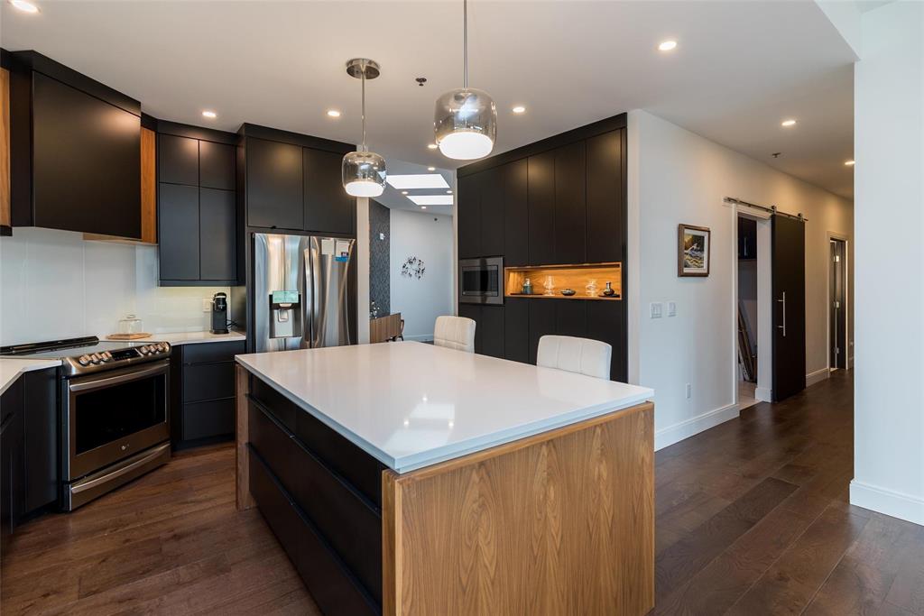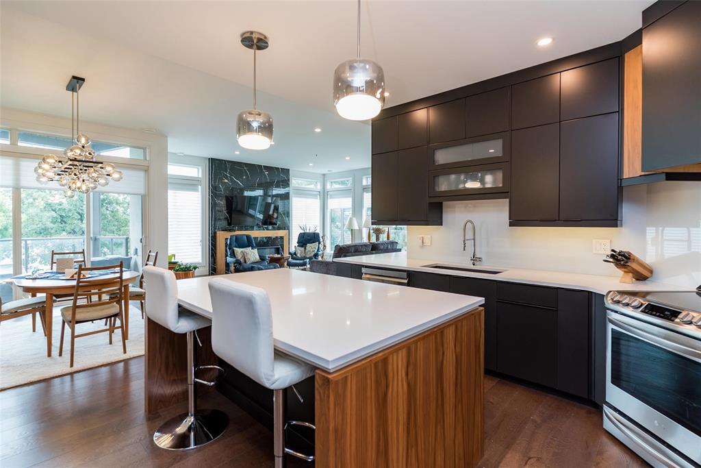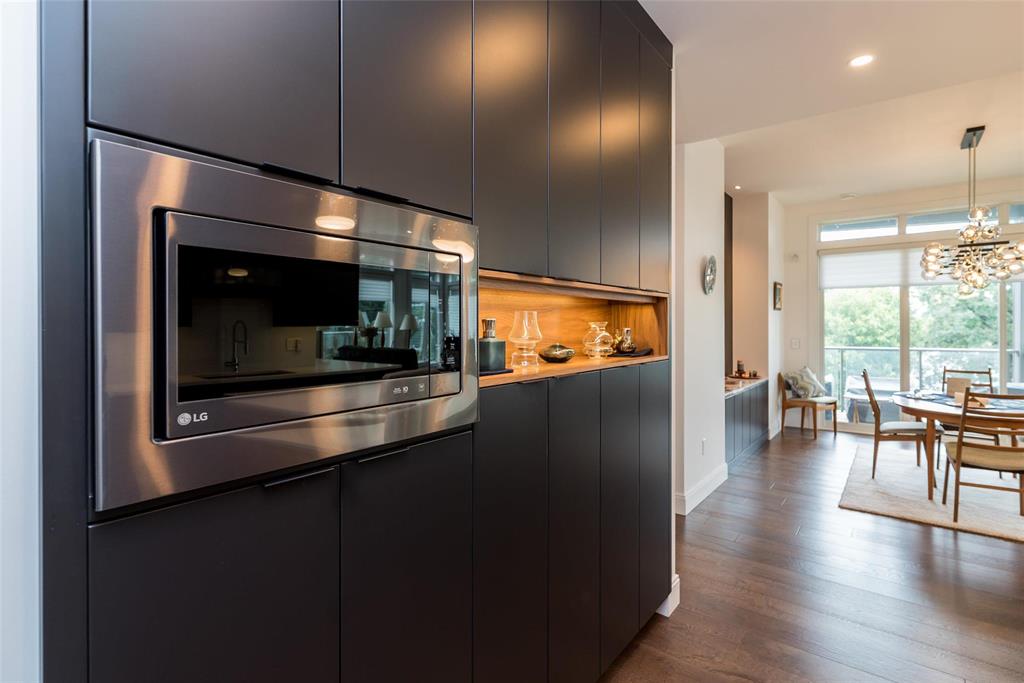 Flooded w/ natural light through floor-to-ceiling windows and skylights, the open-concept living spaces feel bright and inviting. Custom millwork in every closet and the laundry room ensures exceptional storage and organization. Step outside to enjoy morning coffee or evening BBQs on one of two private balconies. Two oversized indoor parking stalls with storage locker provide unmatched convenience.