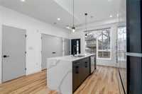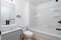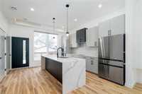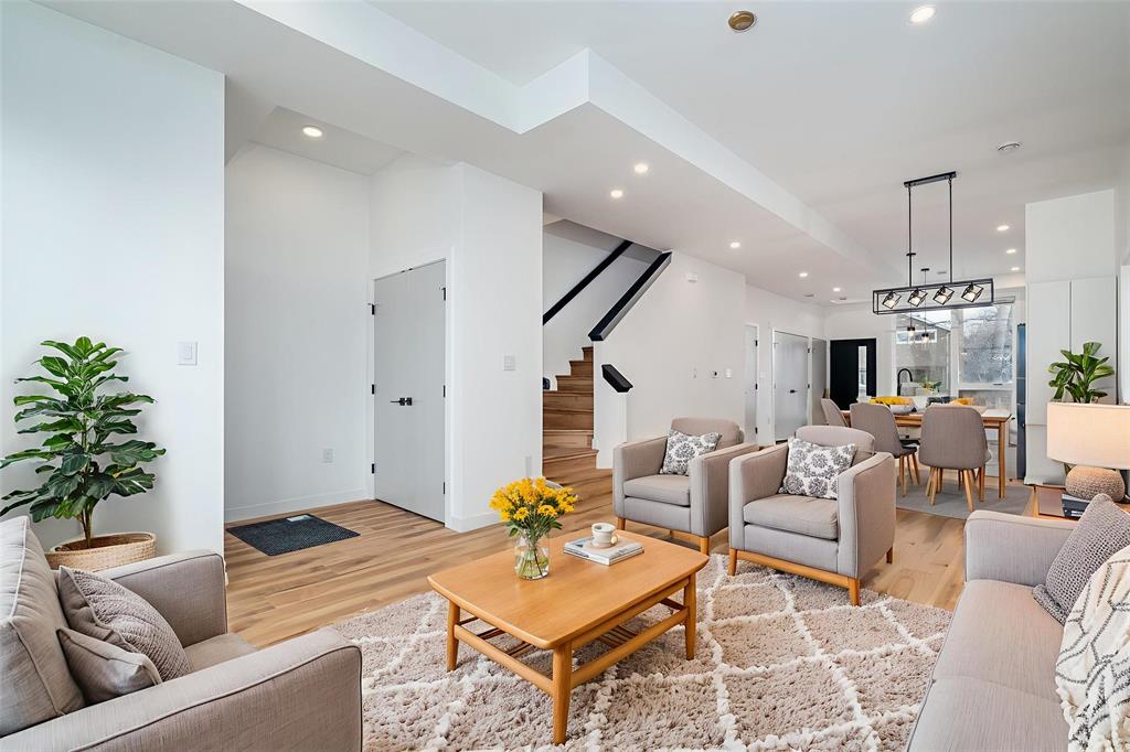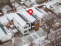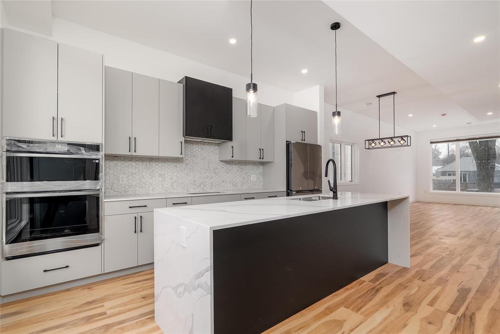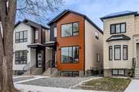 Brand-new home in the heart of River Heights, designed with thoughtful planning and elevated finishes throughout. The main floor features impressive 10' ceilings, oversized windows, wide-plank flooring, and a clean modern layout centered around a two-tone kitchen with quartz counters, a waterfall island, black fixtures, and contemporary lighting.