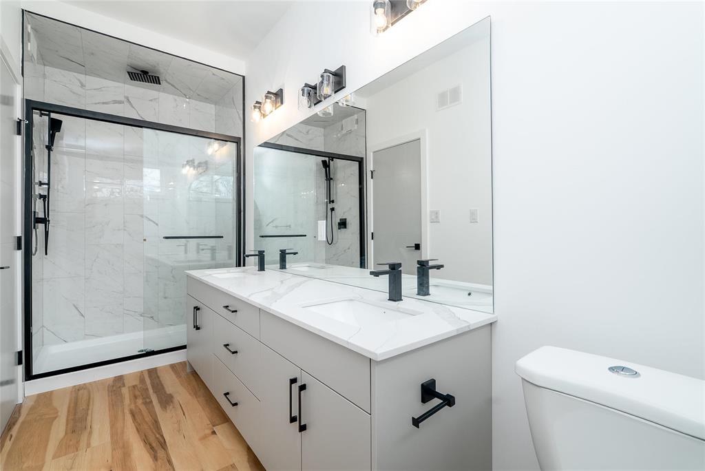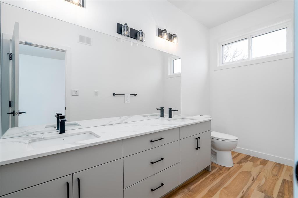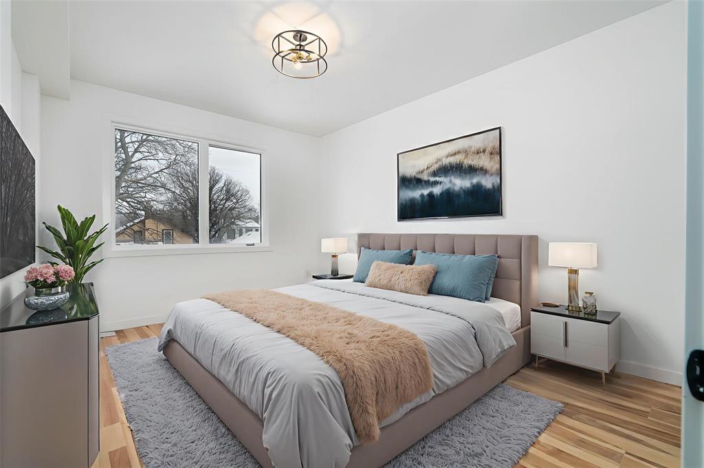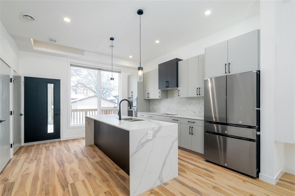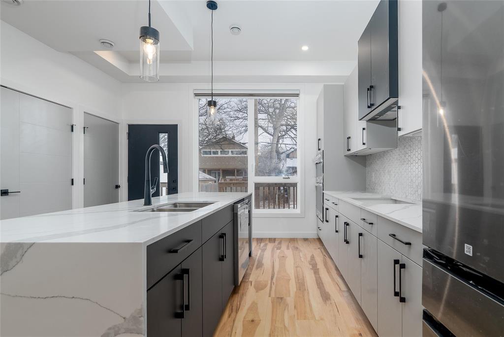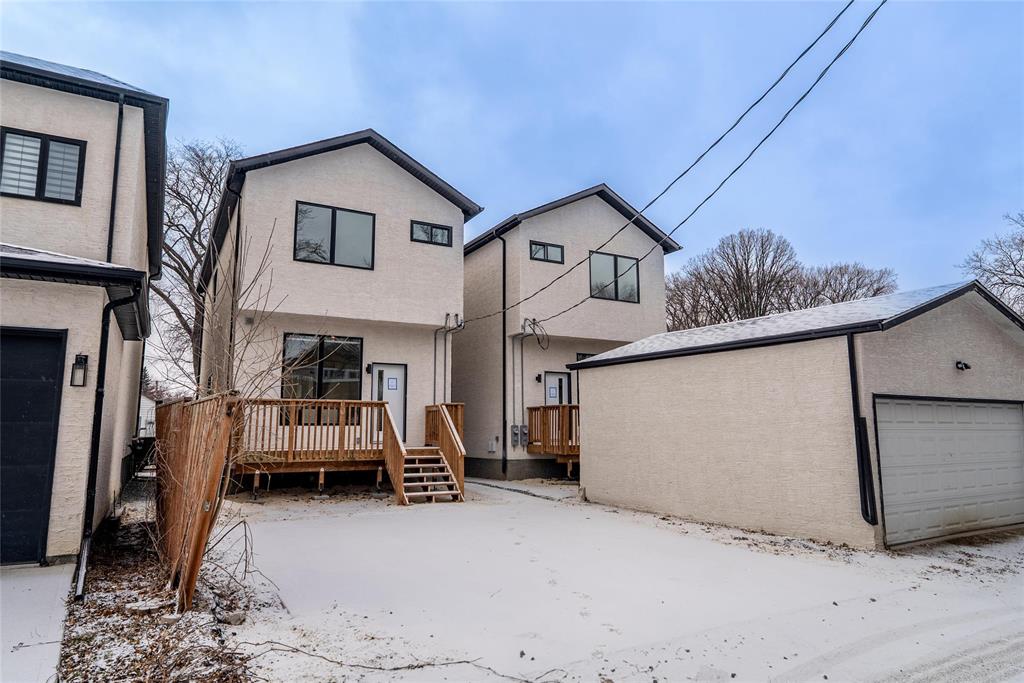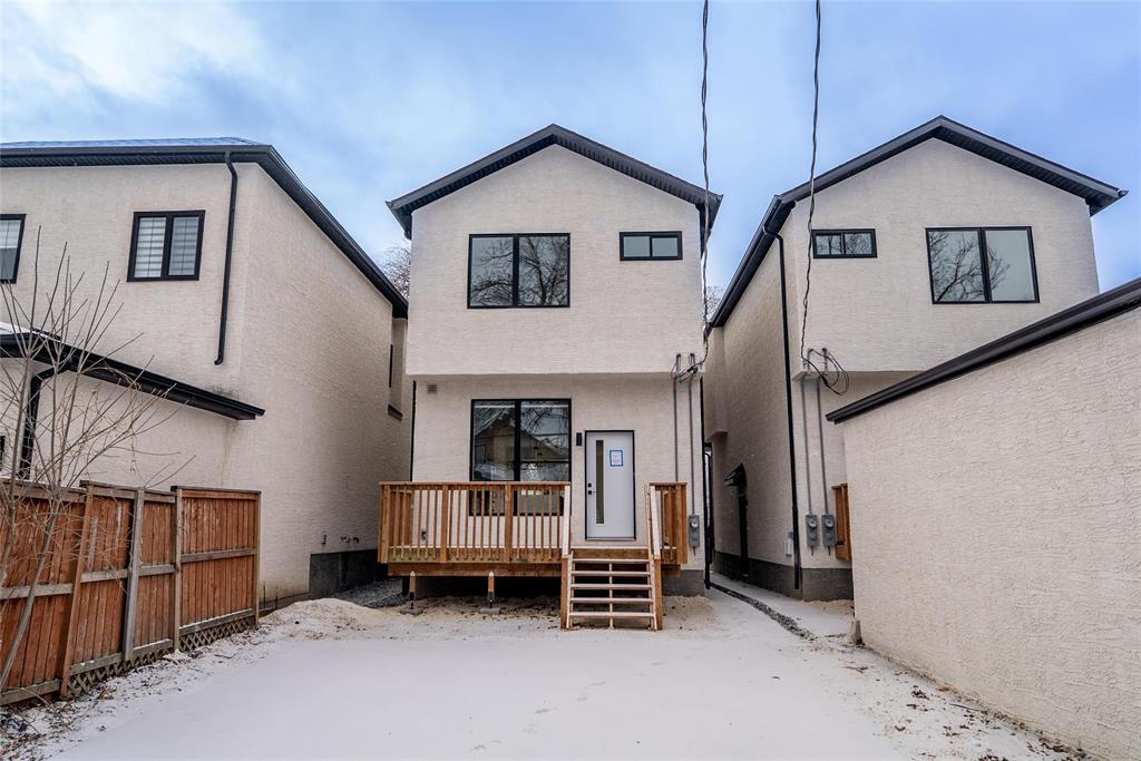 The upper level, finished with 9' ceilings, offers well-laid-out bedrooms and a comfortable 4-piece shared bathroom. The primary suite includes its own private ensuite with a dual sink and a tile-surround shower for a polished, functional retreat. The 9' lower level adds meaningful flexibility with a bright secondary suite that includes a full kitchen, spacious living area, private bathroom, and additional bedrooms—ideal for multigenerational living or income potential. Outside, the home features low-maintenance landscaping, clean curb appeal, and a rear parking pad for off-street parking. Steps from schools, parks, shopping, and the amenities along Academy Road, this property offers a rare opportunity to own a brand-new build in one of Winnipeg’s most established and desirable neighbourhoods.