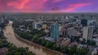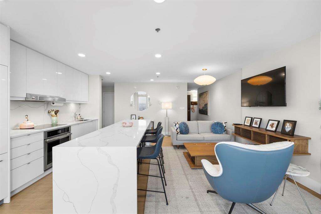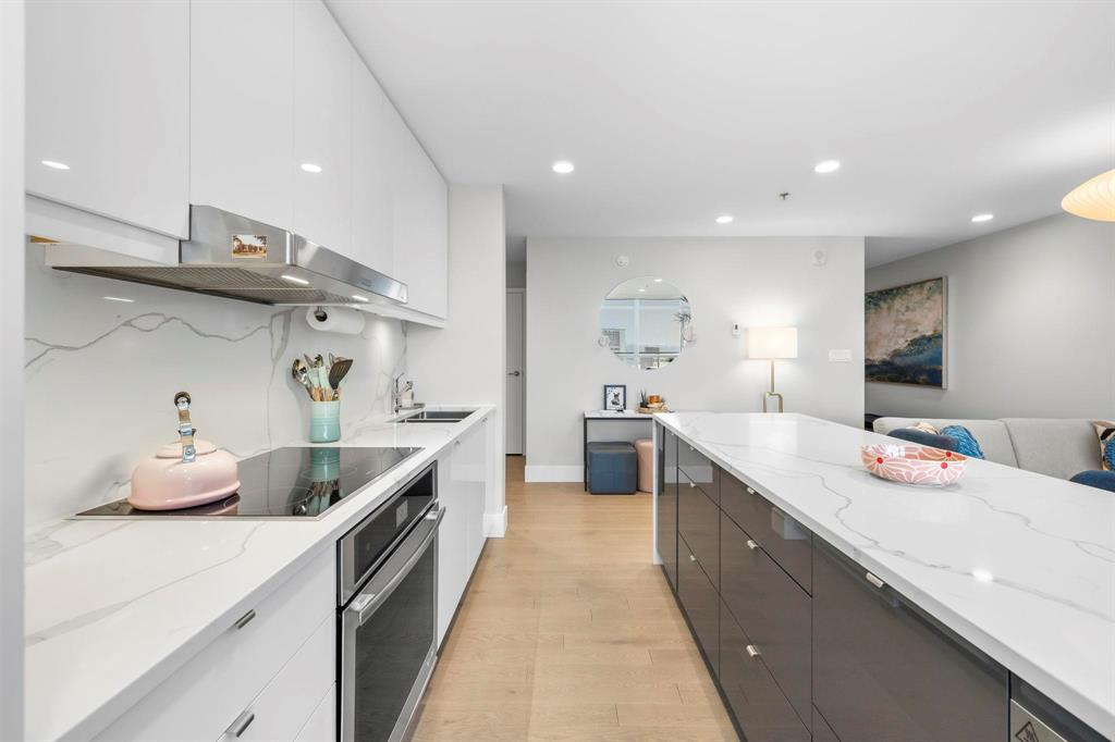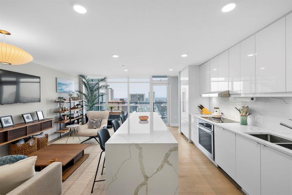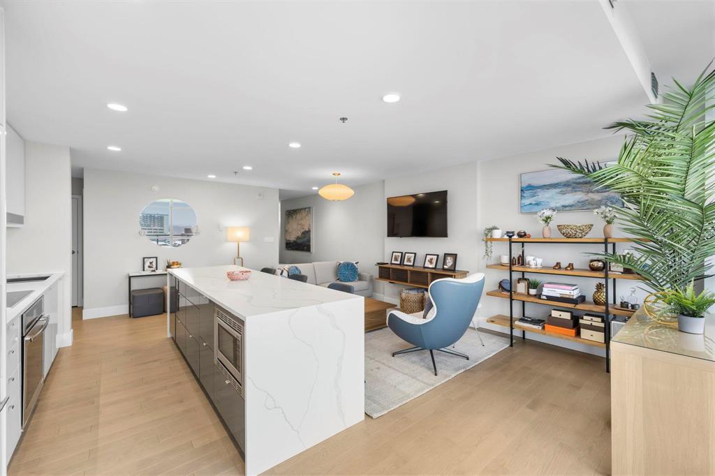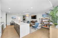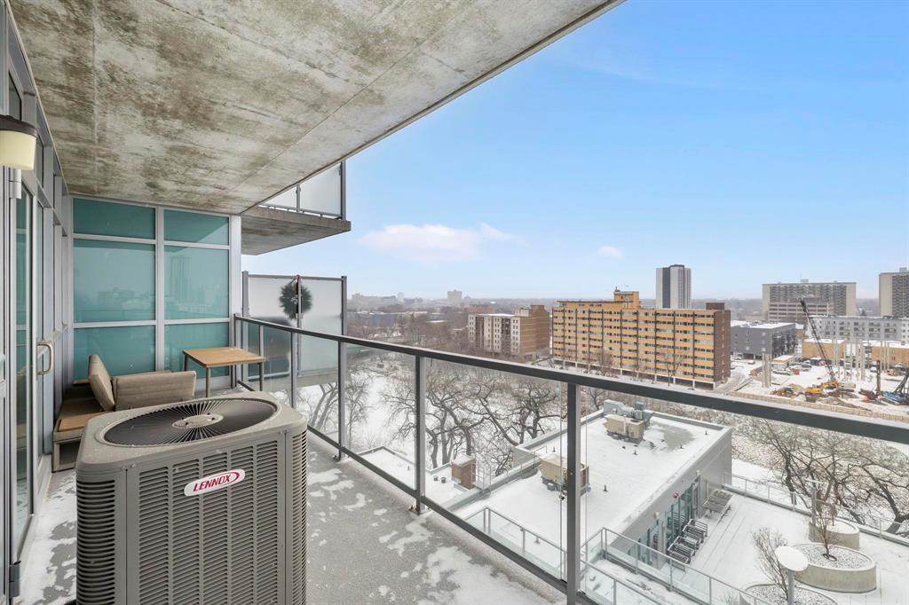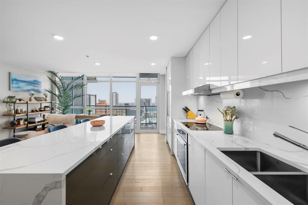 Step into the pulse of downtown. This modern 2 bed/2 bath, 967 sqft condo puts you right where the city comes alive, the river walk, the arena, the restaurants, the nightlife, all at your doorstep. Inside, the finishes are sleek and elevated: quartz, modern cabinetry, under-mount sinks, and integrated Jenn-Air and Fisher Paykel appliances. Bright open living, in-suite laundry, and a true walk-in closet complete the space. The building delivers standout amenities: a 2,364 sqft landscaped terrace with river views, a polished lounge with fireplace and pool table, a full fitness studio, dramatic two-storey lobby, above-grade heated parkade, guest suite, and a private lit path to the river walk.