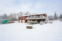 Offers as received! Discover the beauty of Bissett in this spacious 2,016 sq. ft. custom-built home. Featuring 4 large bedrooms, 3 bathrooms, and flexible space for guests or hobbies, this home is designed for comfort. The main floor boasts a bright, open kitchen with ample cabinetry, flowing into a sunlit living area with large windows. Step onto the expansive front deck, spanning the width of the home, and enjoy breathtaking views of Rice Lake—watch floatplanes land and take in the peaceful surroundings. Built to last, this home offers wood/electric heat (electric furnace 2018), in-floor basement heating, a newer hot water tank (2022), a 200-amp panel, and more! Nestled in a remote, nature-filled community, it’s an ideal retreat for those craving privacy and outdoor adventure. Located 2 hours from Lac du Bonnet and 2 hrs 15 min from Selkirk. Bonus: Seniors receive a municipal water and garbage pickup discount! Seasonal Staging: Image has been digitally altered for winter representation.