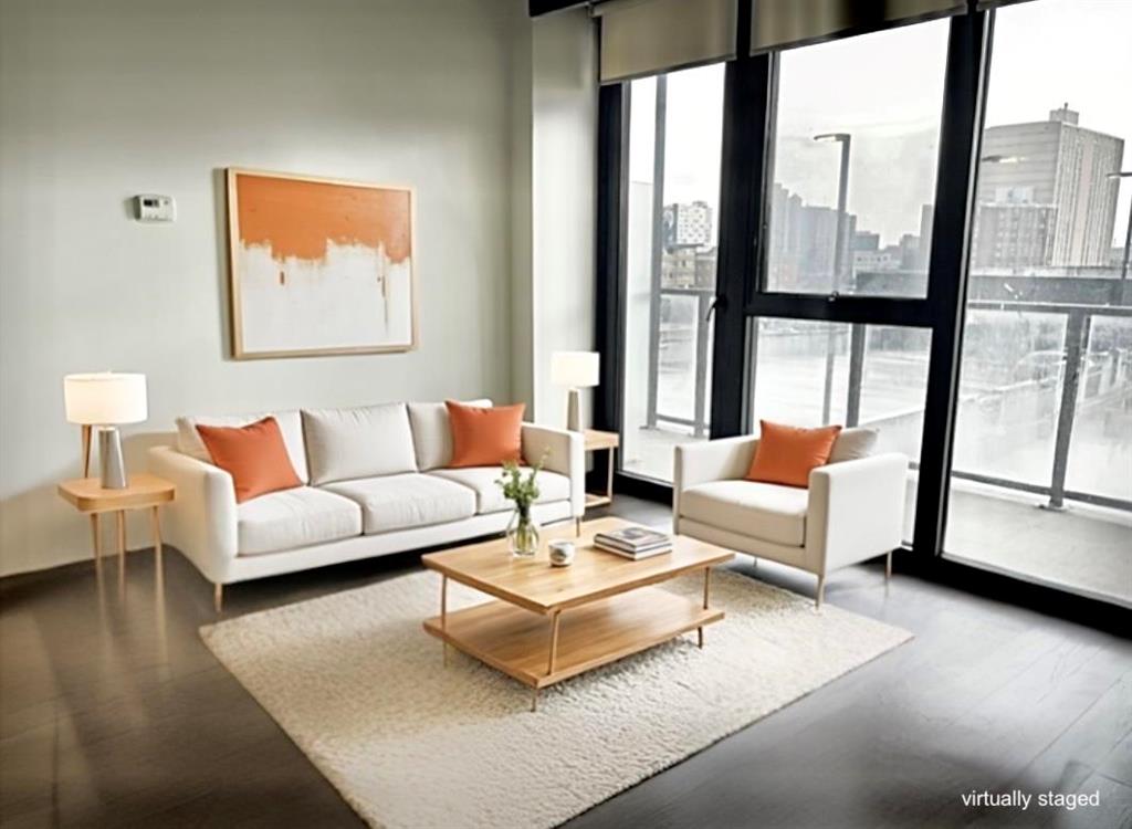 Offers anytime! Stylish Condo unit with exceptional Layout & large balcony. Step into this beautifully designed 1-bedroom condo featuring high-end finishes and a smart, spacious layout. Enjoy engineered hardwood flooring throughout the main living areas, elegant ceramic tile in the bathroom, high-gloss cabinetry, and sleek quartz countertops. The modern kitchen comes fully equipped with stainless steel appliances and in-suite laundry adds everyday convenience. This unit boasts a huge private balcony, perfect for entertaining or unwinding with your morning coffee. Residents enjoy access to luxury amenities, including: A rooftop patio and pavilion with stunning views, 24-hour fitness centre and theatre room. Pets also allowed:) This is more than a home, it’s a lifestyle. A must-see opportunity you won’t want to miss!
