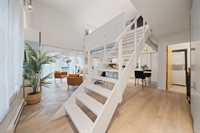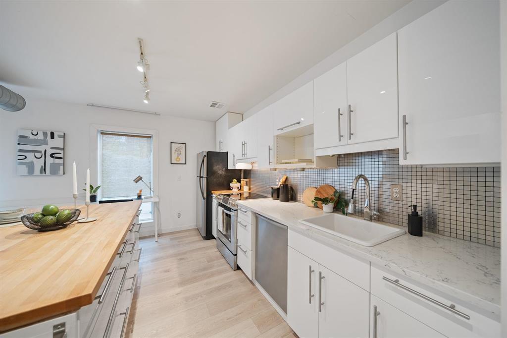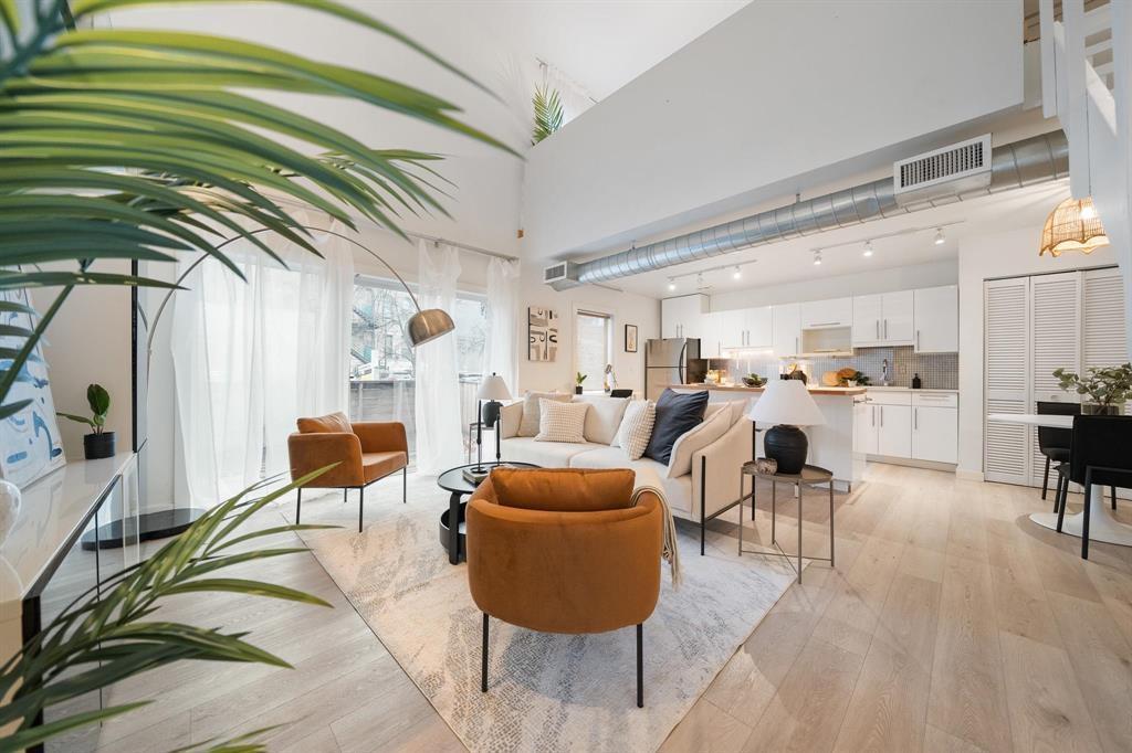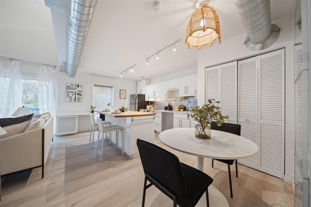 If you are looking for something out of the ordinary, here is the condo for you!This cool modern and contemporary Townhouse Loft was designed by Cohimeyer Architecture and has not been duplicated! An award winning design! The corner unit is the only one in the complex over looking the Park,has an enclosed balcony plus extra south facing windows and patio doors to let the sun shine in! Soaring 18 foot ceilings! Large Loft bedroom overlooks the Living Room with great closet systems! The open concept main floor definitely has the WOW factor!Quartz counters and butcher block Island that seats 3 easily! Cute dining area with built in hutch! Insuite laundry! Remodelled bath with heated floors! Parking included and literally 3 steps away from your front door! Walking distance to the University of Winnipeg! This one checks all the boxes! Great price! Central location!