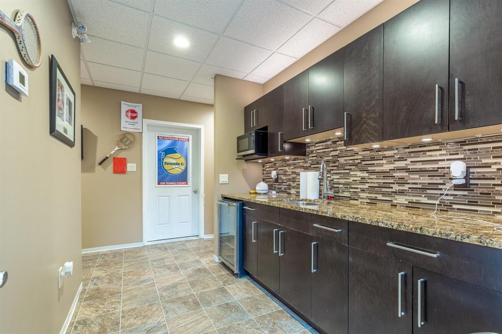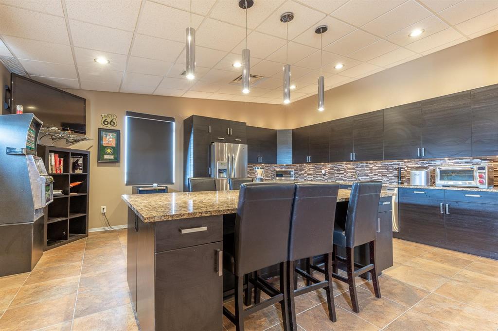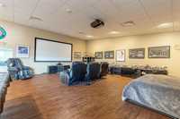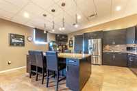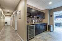 kitchen/bar, lounge, and recreation space, easily adaptable to meet additional office or meeting room needs.