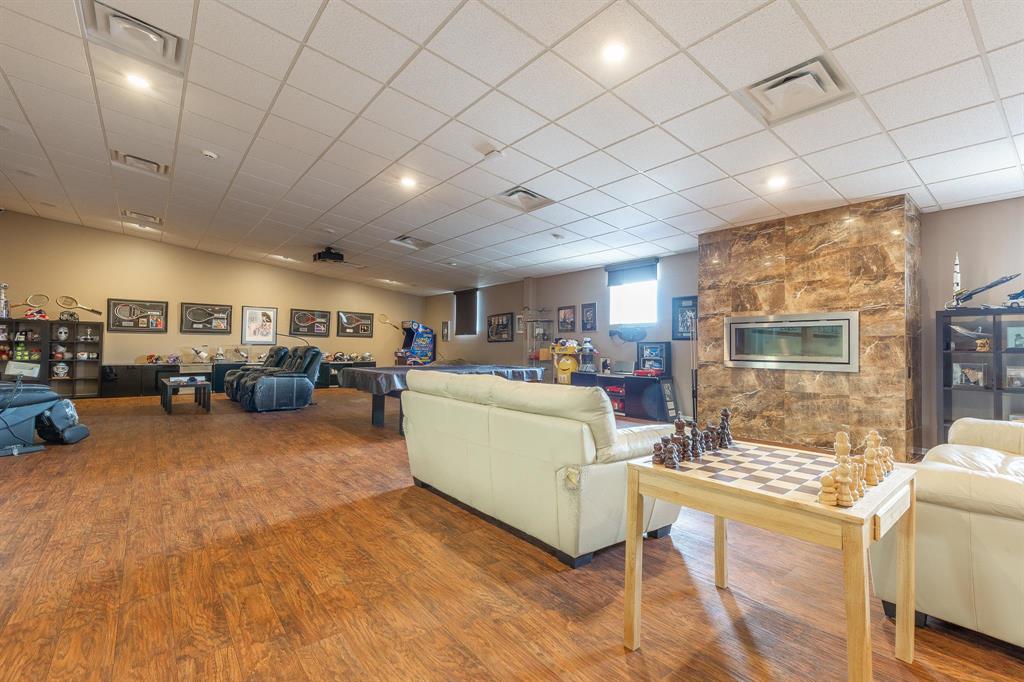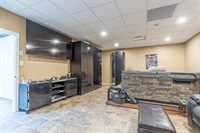 room, and a boardroom, plus two accessible bathrooms with steam showers. The upper level includes a