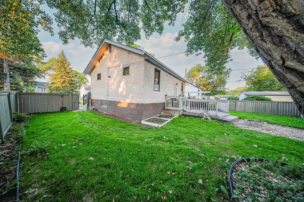 2 bedroom 2 bathroom bungalow in the heart of St. Vital. Great starter home for a small family. Surrounded by mature trees and a fully fenced yard, the charming front deck is perfect for your morning coffee, while the back deck provides an ideal space for family gatherings or relaxing with friends. Inside, enjoy a bright open-concept living and dining area, a functional kitchen, full main-floor bath, and two cozy bedrooms. Recent updates include new shingles on the garage roof, fresh paint, a new hot water tank, and new laminate flooring on the main level. Book your showings today !