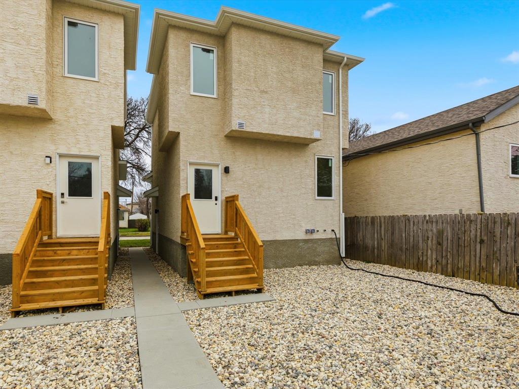 Nestled in the Heart of St James, Daerwood Homes presents another new build coming in 2025. Built on an ICF foundation with quality construction at its best. This duplex-style 2-storey home with secondary suite will be sure to impress! Live in one unit & rent the basement suite or rent both units. Each unit has its own private entrance & separate meters. Both units boast a very functional floor plan. The main floor offers a large custom kitchen with quartz counters, large island, pot lights, food storage pantry, 2-pc bath, and luxury vinyl flooring throughout. Upstairs you will find 3 good size bedrooms, full 4-pc bath, & laundry room. The master bedroom features a good sized walk in closet with ensuite. The basement suite features 1 bedroom, 1 full bath with an open concept kitchen area & living room, plus in-suite laundry. The price includes gst & 5 year Blanket Home Warranty. Price includes all appliances for both units, landscaping package and central air. Complete turn key. Call today for more info. A great investment!