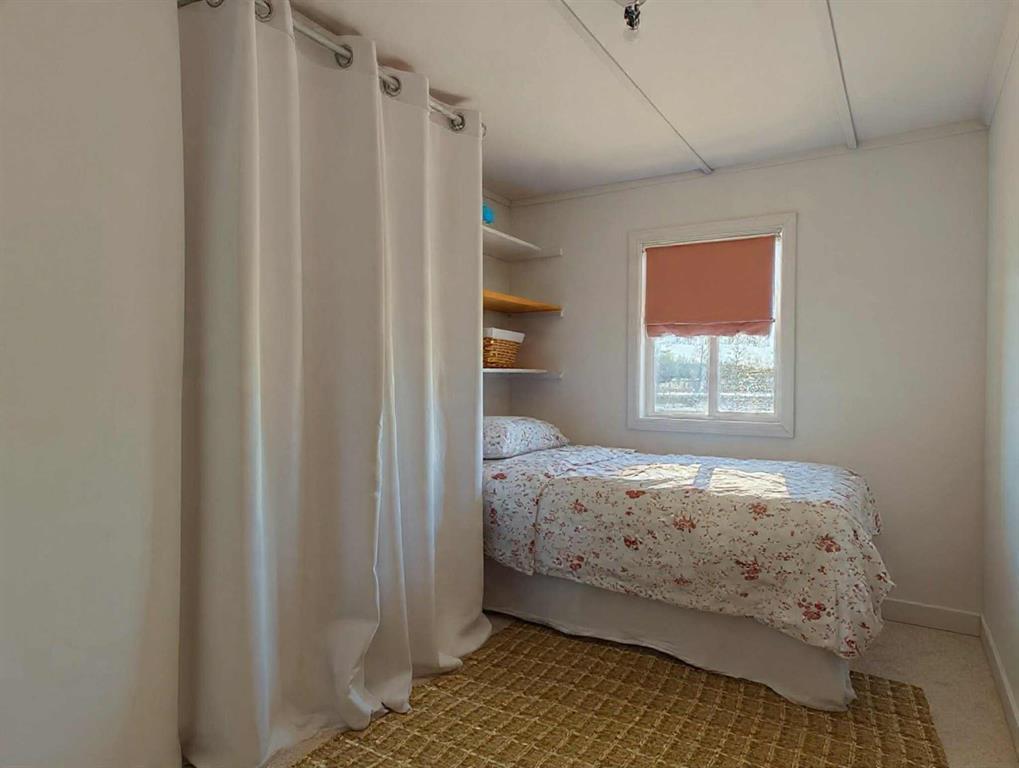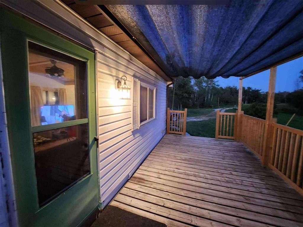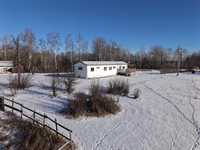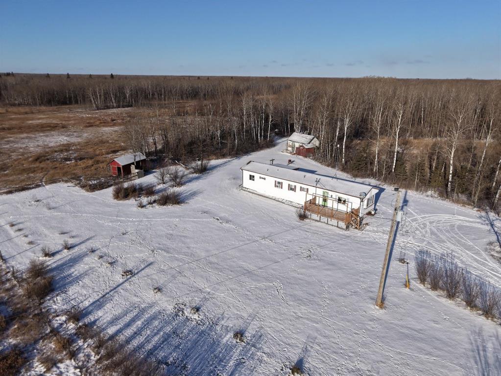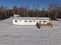 Outdoors: large front deck, storage shed, barn, barbed-wire fencing, circular driveway & parking for 4 vehicles. Approx 15 mins to Gimli Beach; 50 mins to Winnipeg via Hwy 7. A versatile property ideal for a retreat, hobby farm or hunting base.