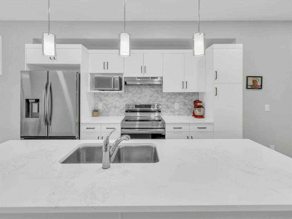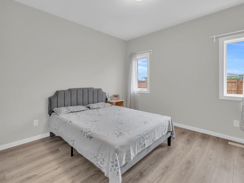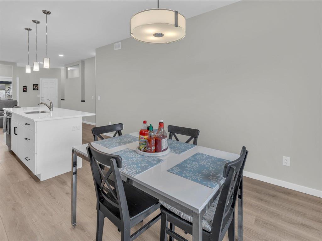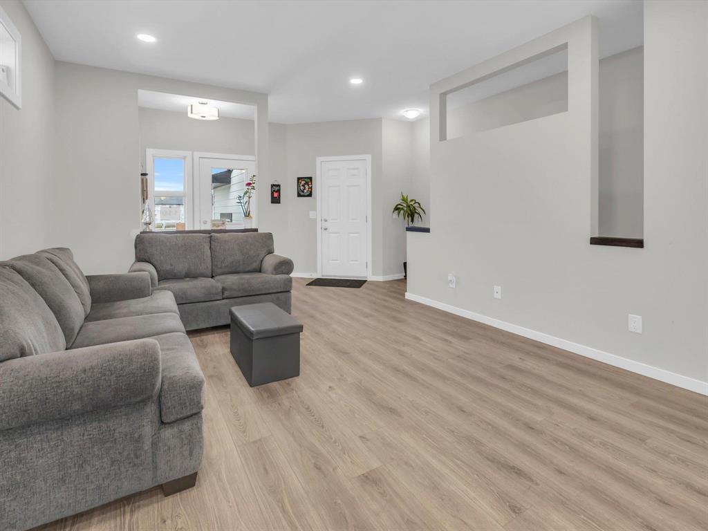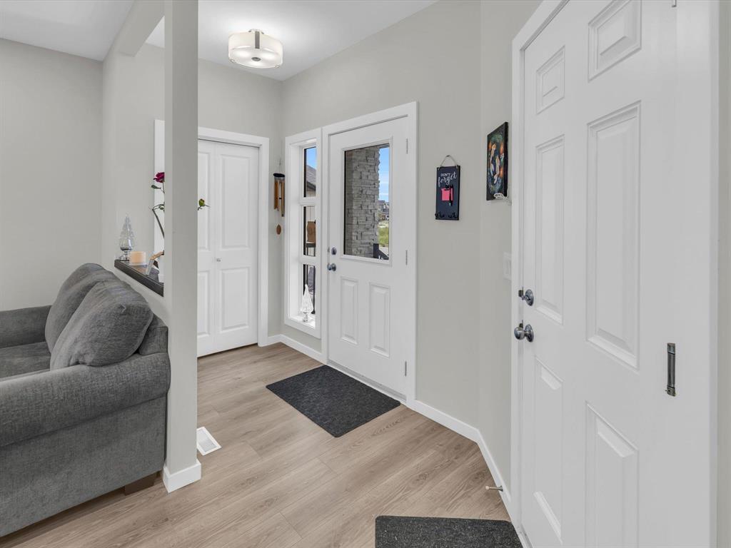 Located in BISON RUN, one of Winnipeg’s fastest-growing neighborhoods, this modern 3 Bed, 2 Full Baths, and a bright open-concept layout with 9’ ceilings and upgraded vinyl plank flooring throughout. Step inside to the spacious great room, flowing seamlessly to the kitchen featuring quartz countertops throughout, large island with bar seating, pendant lighting, LED disc lights, tall pantry, and brand new appliances. At the back of the home, the dining area is highlighted by a piano window and sliding patio doors, filling the space with natural light. The primary bedroom includes a full ensuite with quartz countertops and a standing shower with glass doors. Both bathrooms feature quartz countertops for a clean, modern finish. Other upgrades include: 200 Amp panel, central A/C, gas rough-in for range & BBQ, Hardie siding, poured sidewalk & driveway. The basement is ready to develop—with plumbing for a future full bathroom, 4 egress windows, and ample space for 1–2 bedrooms plus a rec area. Built on piles and still covered under new home warranty, 5 mins to the UofM, close to all levels of schooling, shopping centers, parks and so much more!!