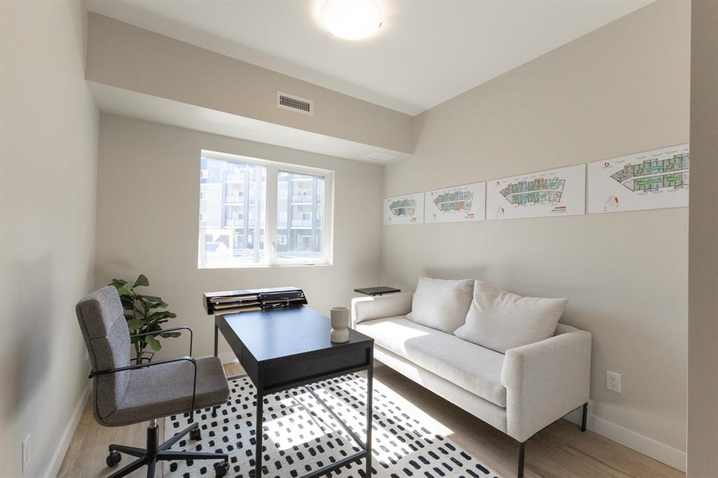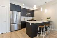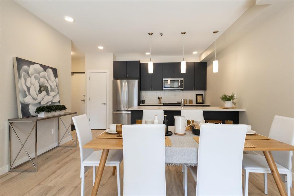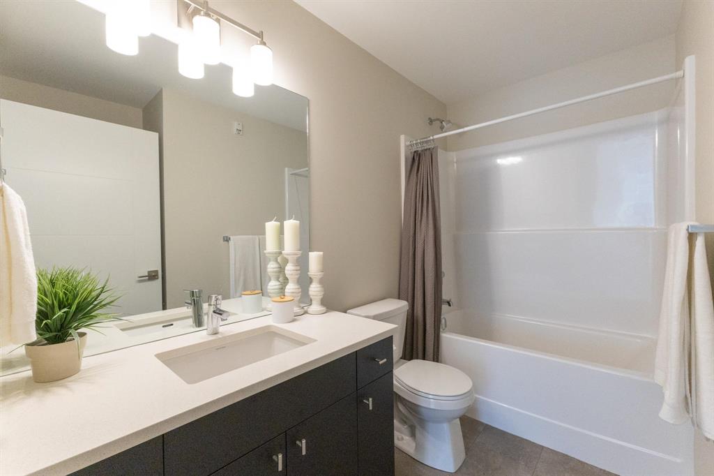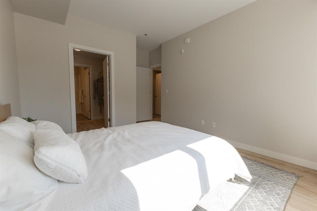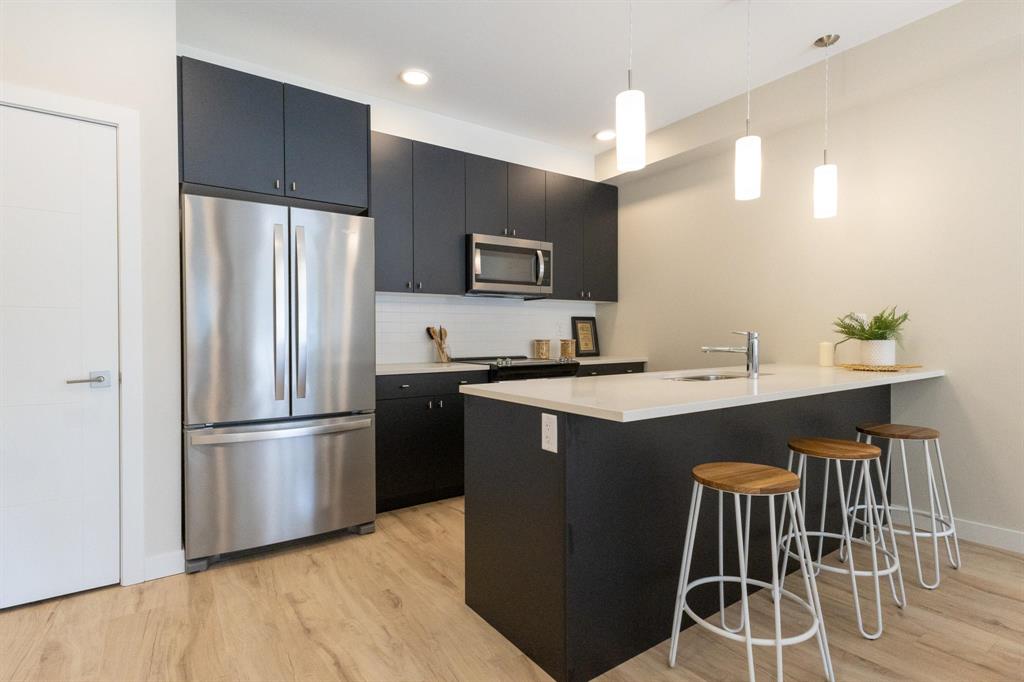 **OPEN HOUSES: Thurs 4-7pm, Sun 1-4pm (closed Sundays of long weekends)** Welcome to Bloom & Timber - this quality constructed Irwin Homes condominium building is nestled in an ideal location! Close to walking trails, shopping, & easy access to the lake! The "Foxglove" layout offers 1094 sq ft w/2 bedrooms, 2 bathrooms, all appliances included, in-suite laundry, 1 underground parking stall & 1 storage locker. Step inside this functional floor plan to be greeted by vinyl plank flooring throughout the entire unit. 9' ceilings make the space feel even bigger, & natural light floods in through the large patio doors. In the kitchen, you'll find quartz countertops, ceramic tile backsplash, soft-close cabinets & drawers, a pantry, & a peninsula w/room for seating. The open concept layout is modern, & is complimented by a tasteful colour palette. The spacious primary bedroom has a walkthrough closet & 4pc ensuite bathroom w/the same quality finishes carried through. 2nd bedroom, large 3pc main bathroom, laundry room & balcony complete this unit. Bloom & Timber has it all - Business Centre, Gym, Common Room, Owner's Lounge, Guest Suites & more!