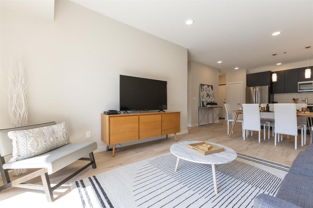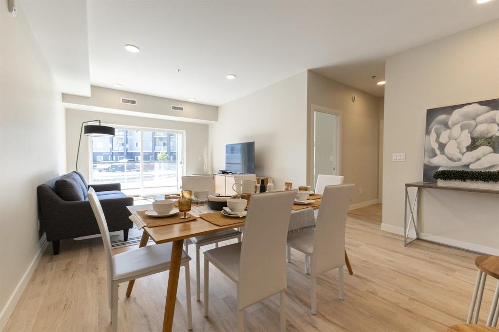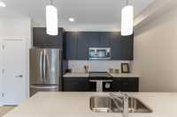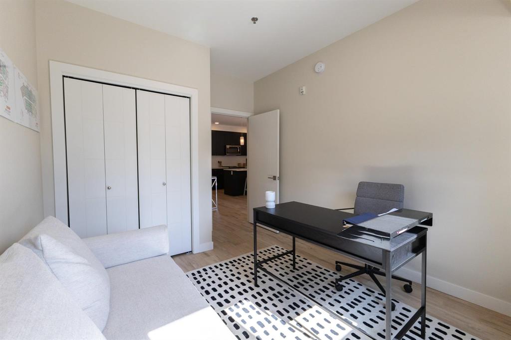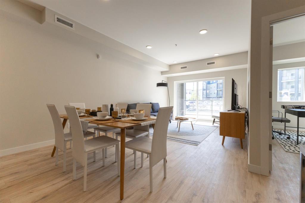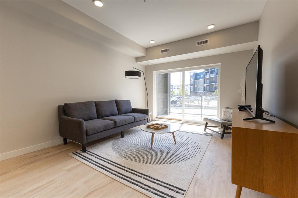 **OPEN HOUSES: Thurs 4-7pm, Sun 1-4pm (closed Sundays of long weekends)** Welcome to Bloom & Timber - this quality constructed Irwin Homes condominium building is nestled in an ideal location! Close to walking trails, shopping, & easy access to the lake! The "Foxglove" layout offers 1094 sq ft w/2 bedrooms, 2 bathrooms, all appliances included, in-suite laundry, 1 underground parking stall & 1 storage locker. Step inside this functional floor plan to be greeted by vinyl plank flooring throughout the entire unit. 9' ceilings make the space feel even bigger, & natural light floods in through the large patio doors. In the kitchen, you'll find quartz countertops, ceramic tile backsplash, soft-close cabinets & drawers, a pantry, & a peninsula w/room for seating. The open concept layout is modern, & is complimented by a tasteful colour palette. The spacious primary bedroom has a walkthrough closet & 4pc ensuite bathroom w/the same quality finishes carried through. 2nd bedroom, large 3pc main bathroom, laundry room & balcony complete this unit. Bloom & Timber has it all - Business Centre, Gym, Common Room, Owner's Lounge, Guest Suites & more!