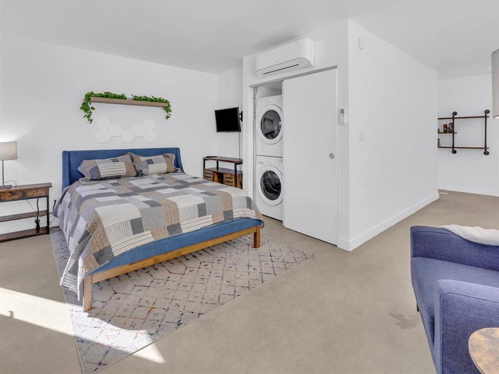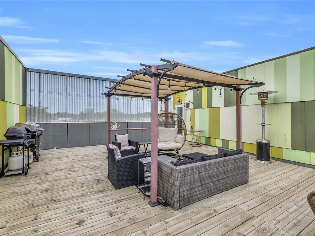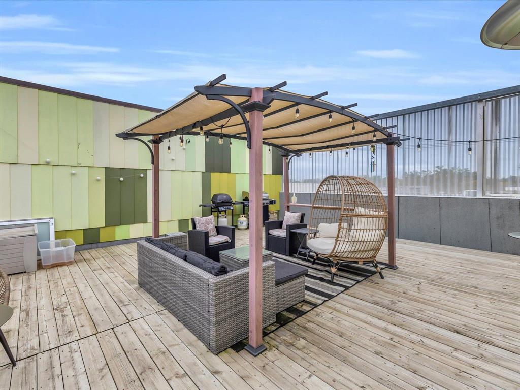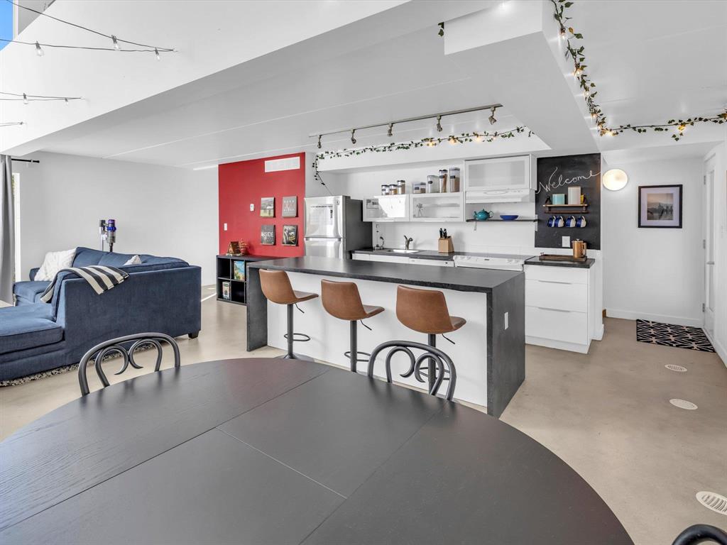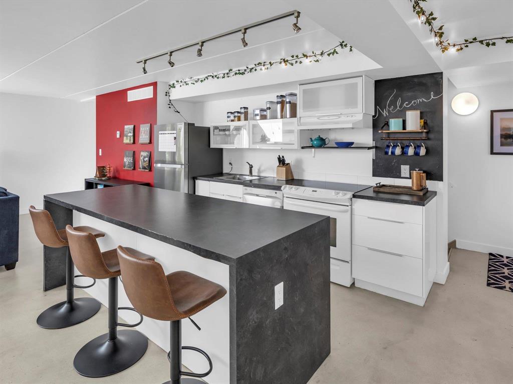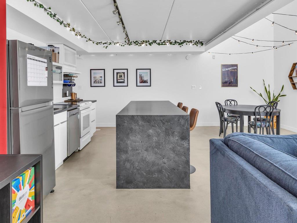 Showings start NOW! Offers anytime. Be ready to be blown away! Live it up in elegance, simplicity and modern style over multiple floors. Huge windows from top to bottom makes the open concept layout even more stunning and bright. Galley foyer upon entrance. A kitchen that would get anyone excited to wield a spatula. Large eat-in island with waterfall countertop makes for an amazing place to cook and entertain guests. All appliances included. Spacious living and dining areas. Sleek lines, unique lighting and NO carpet! Primary bedroom is on the upper level overlooking the main floor. Four-piece ensuite and laundry. Your very own private rooftop terrace is truly special and one of only two in this complex. The perfect place to unwind or get the party started! Conveniently located, downtown nightlife, the Exchange & Canada Life Centre are less than 10 minutes away. Close to Polo Park, restaurants and local shops. Fees include all utilities. Move-in ready! Call today!