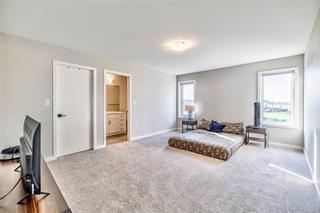 Welcome to this beautiful, two-storey family home in the desirable Prairie Pointe neighbourhood. Built in 2022, this modern detached residence offers approximately 2158 square feet of living space, including four bedrooms and 2.5 bathrooms. The main floor impresses with soaring 18-foot ceilings, windows that capture serene lake and trail views, and a gourmet kitchen complete with quartz countertops, stainless steel appliances, and a walk in pantry. Upstairs, the large master suite features its own luxurious ensuite and walk-in closet! This home is close to all amenities such as bus stops, schools, shopping, parks and more!