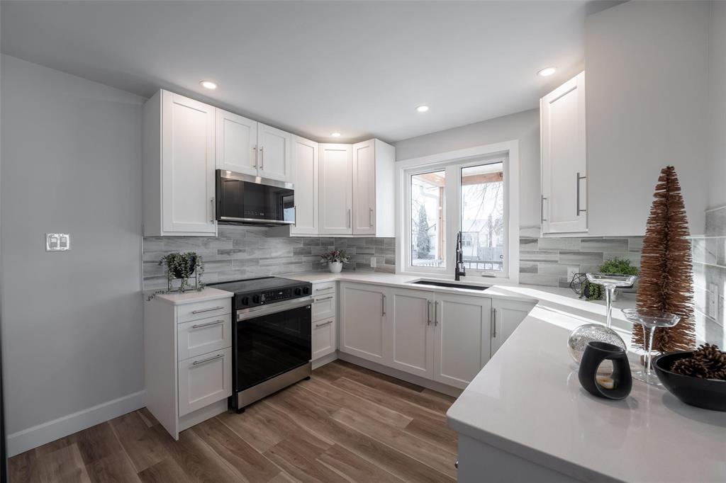 Showings start immediately, with offers to be presented Wednesday evening, December 17, 2025. This beautifully renovated, fully move-in-ready home at 67 Greene features extensive upgrades throughout, including all-new plumbing, 100-amp electrical, insulation, framing, windows, doors, flooring, lighting, and completely updated kitchen and bathrooms. A bright front hall with closet opens into the inviting living/dining room. The brand-new kitchen offers sleek cabinetry, quartz-style counters, and modern appliances. The main floor includes two comfortable bedrooms—a spacious primary plus a stunning 4-piece bath with tile shower and soaker tub. The fully finished lower level adds a large rec room, laundry area, an additional bedroom, and another stylish 4-piece bath. Mechanical updates include a high-efficiency gas furnace, 2022 electric hot water tank, and new insulation. Outside features a new covered porch, brick path, and a 14×27 garage with rare drive-through doors. Backing onto Angus McKay school and park, this home offers exceptional convenience, added privacy, and a wonderful sense of community—truly a place to settle in, relax, and enjoy every day. Just footsteps from Kildonan Drive.