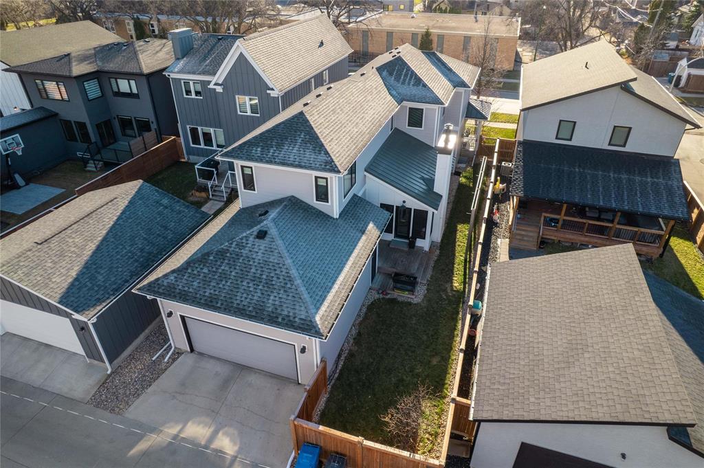 S/S Tuesday Dec 9th, offers Tuesday Dec 16th. Stunning custom-built 2019 two-storey in the heart of River Heights, blending modern design with timeless character. A welcoming front porch with swing set the tone. Inside, 9 ft ceilings and engineered hardwoods lead to a warm living room with gas fireplace and custom built-ins. The showpiece kitchen features quartz counters, solid wood cabinetry, an 8-ft island, Wolf 48" gas range with double oven, custom pantry and Sonos speakers. The dining area is bright and airy with triple-pane windows and custom drapery. A stylish 2-pc bath, well-appointed mudroom with built-ins, dog gate and garage access complete the main floor. Enjoy the beautiful 3-season sunroom with wood-burning fireplace. Upstairs offers a serene primary suite with walk-in closet and spa ensuite, plus two large bedrooms, a flex room or 5th bedroom, 5-pc bath and laundry room. The finished basement adds a spacious rec room with bar, bedroom and full bath. Built on piles with dual-zone heating and cooling, HRV, 200-amp service and an insulated double garage (wired for heat) with overhead storage. Cedar deck, dog run and cedar privacy fencing. A move-in-ready, truly exceptional family home.