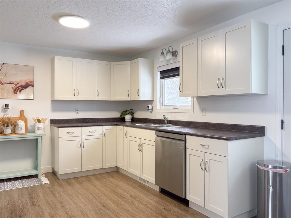 The welcoming front entry connects to the double garage & offers a handy pantry space. The garage and the upper-level addition were built in 2007 (separate furnace), w/ numerous upgrades completed in recent years such as shingles (2 yrs), HWT, updated appliances, windows, kitchen, exposed aggregate concrete patio on the west side of the house & more. Don’t miss your chance to own an updated home paired with the oversized yard you’ve been dreaming of!