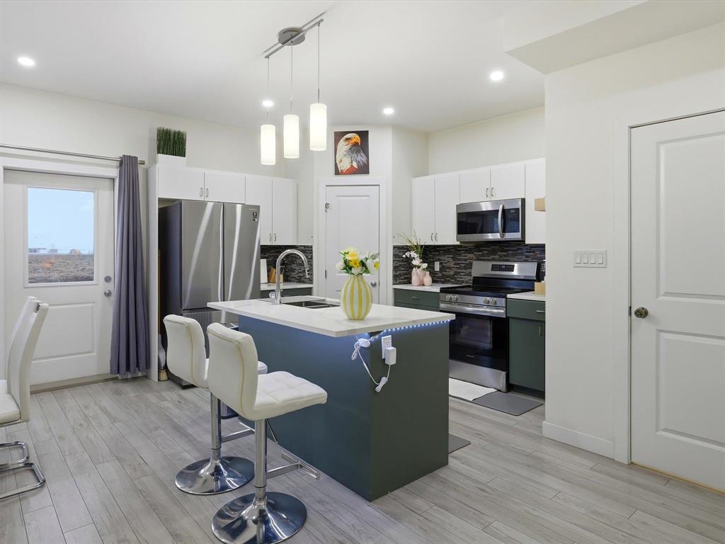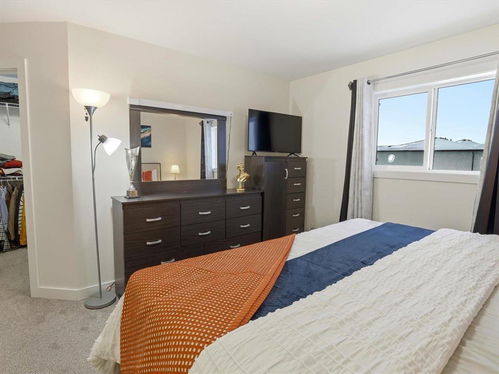 This home is within walking distance to Gurdwara Kalgidhar and close to all amenities. The main floor features a bright, open living area, dining area with patio door, and a convenient half bathroom.The kitchen boasts maple stain cabinetry and quartz countertops, with quartz continued throughout all bathrooms. The upper level offers three spacious bedrooms and two full bathrooms, including a primary bedroom with walk-in closet and 5-piece ensuite featuring a Jacuzzi tub.