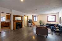 Welcome to this 1572 sqft residence featuring three bedrooms and one bathroom. Upon entering, you will find an expansive living room that offers ample space for everyday living and gatherings. The kitchen extends approximately 23 feet and provides generous cabinetry and counter space. The main level includes two well-sized bedrooms, while the upper floor offers a third bedroom accompanied by a versatile loft or flex space suitable for various uses. Outdoors, the property includes a 24x30 garage or workshop equipped with 100-amp service. The 0.77 acre lot boasts mature trees along with cherry, apple, and plum trees. A garden area and abundant parking further enhance the property’s appeal. Additional features include an updated electrical panel and a living room fireplace that has been capped. Photo 2 is virtually staged.