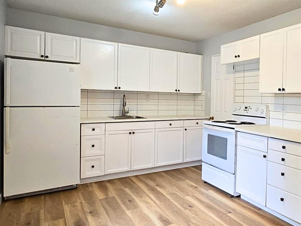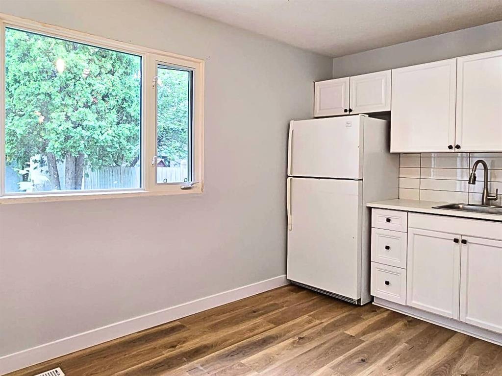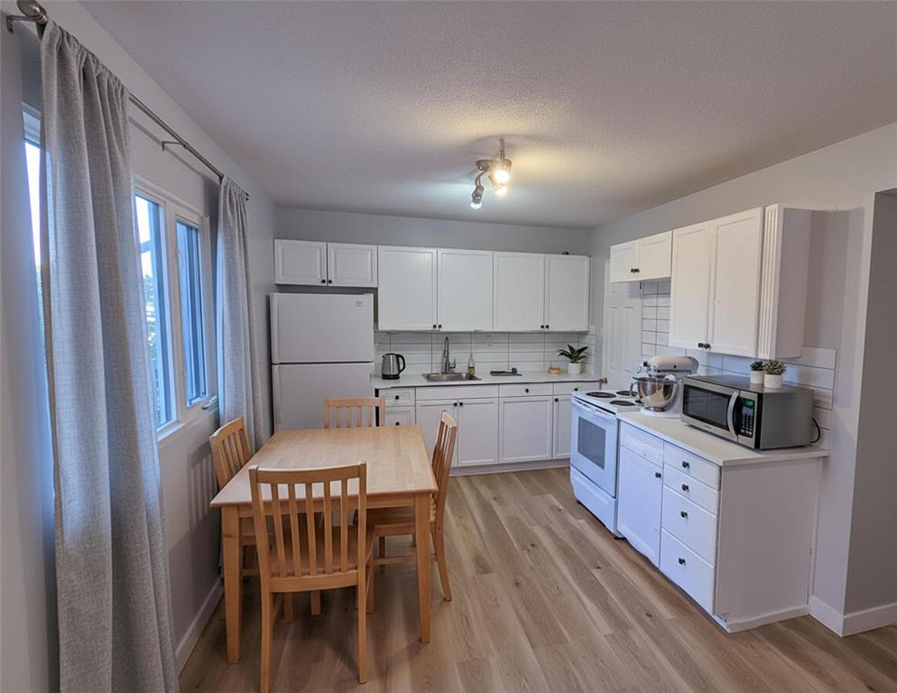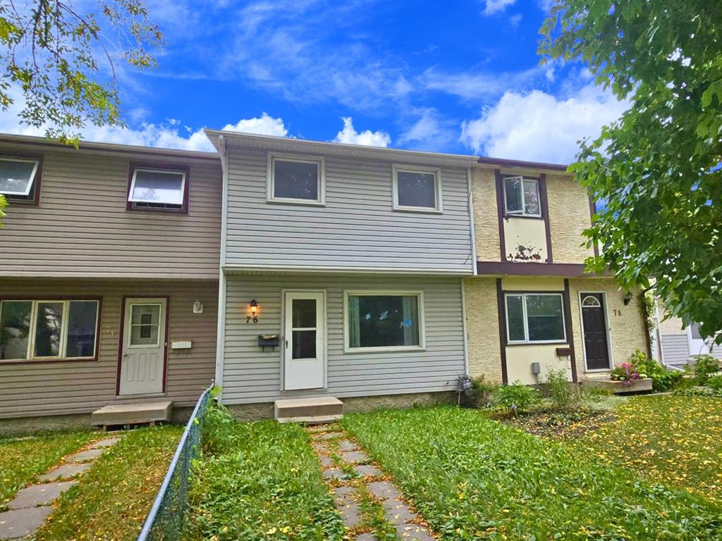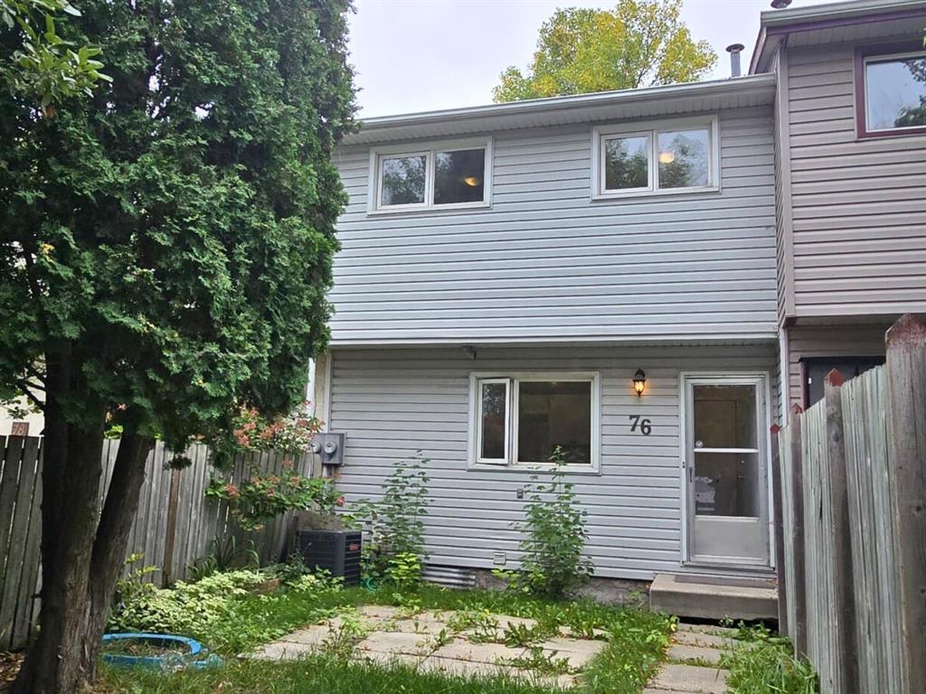 Updated 1089 sqft 2-storey townhouse. 2025 updates include new laminate & vinyl flooring, kitchen counters, paint, baseboards & electric HWT. Updates over the years include PVC windows, roof shingles, high-efficiency furnace, central A/C, bathrooms. The townhouse has a partially developed basement (rec room). 3 bedrooms upstairs and a full 4pc bathroom. Rear fenced yard with shed & rear parking pad via back lane. 76 Girdwood is ideal for first-time buyers or investors seeking a rental. Convenient location near transit, shopping, new school & keenlyside park! Fridge, Stove, Washer & Dryer included. No monthly condo fees/maintenance fees. Immediate possession. Please leave Offers open 24hrs. Some photos virtually staged.