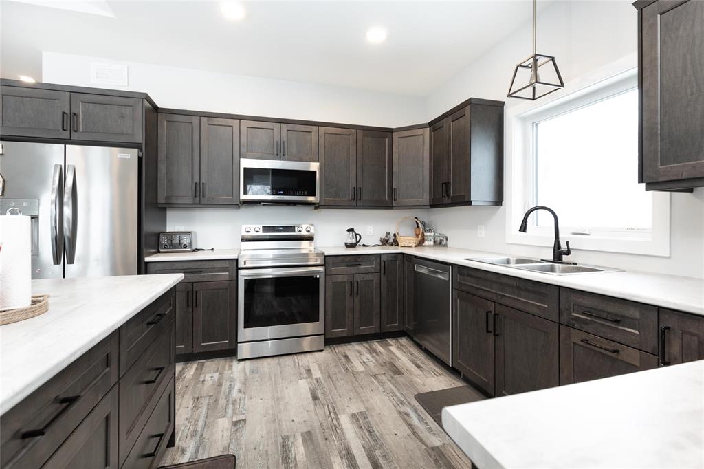 Welcome to this beautiful 1116 sq ft bi-level home, built in 2022 and set on a spacious, treed lot that offers both privacy and charm. From the moment you arrive, the peaceful atmosphere of this quiet neighborhood sets the tone, while still keeping you conveniently close to amenities and just minutes from a stunning provincial park. Step inside to a bright and inviting layout featuring modern finishes and thoughtful design. Large windows flood the main level with natural light, highlighting the open-concept living and dining areas—perfect for everyday living or hosting family and friends. The bi-level floor plan provides excellent separation of spaces, with well-sized bedrooms and comfortable living areas on both levels, giving you flexibility for family, guests, or a home office. The home also includes a double attached garage. Whether you're seeking a peaceful retreat or a modern home close to recreation and conveniences, this property offers the best of both worlds!