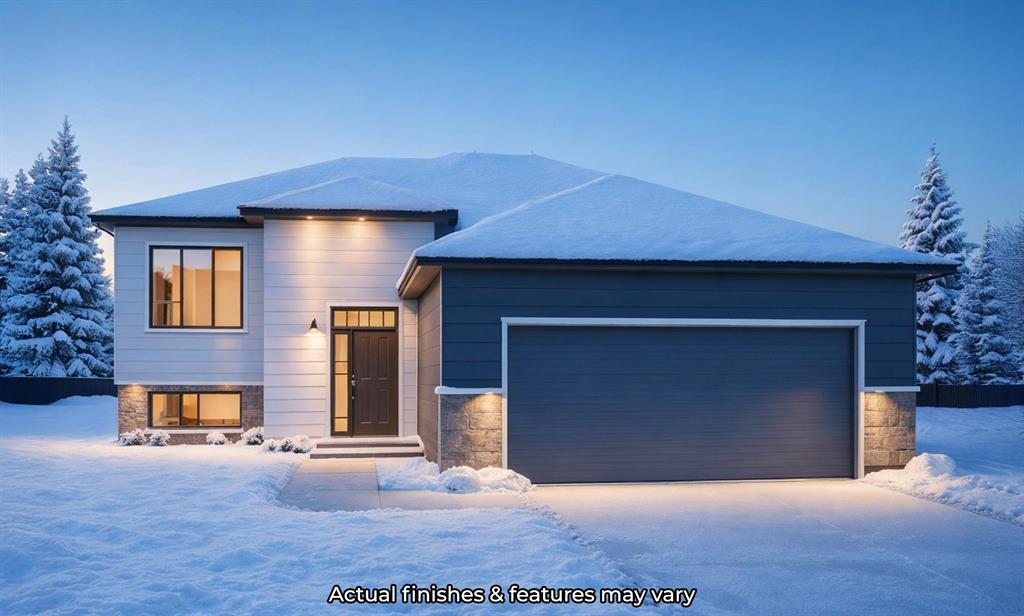 Absolutely AWESOME 1159 SqFt 3 bedroom/2 bath bilevel home on Evergreen Blvd in Tyndall MB! This home will be built on piles & will feature a 10 year new home warranty. As you enter the plan, you'll be greeted by a large drop foyer w/large coat closet & access to the 22x22 double-attached garage. The main floor plan offers 9ft ceilings, loads of windows that let in a ton of natural light, LED potlights, luxury vinyl plank flooring & a family-sized living room (perfect for entertaining)! The eat-in kitchen boasts a large island, soft close cabinets, corner pantry, dining area & garden door access to the backyard. Down the hall you'll find the large 2nd & 3rd bedrooms, a full 4-pc bathroom & the spacious primary bedroom w/large walk-in closet & 3-pc ensuite bathroom w/3/4-height acrylic shower! WOW! Call today for more info & customize this home the way you want!