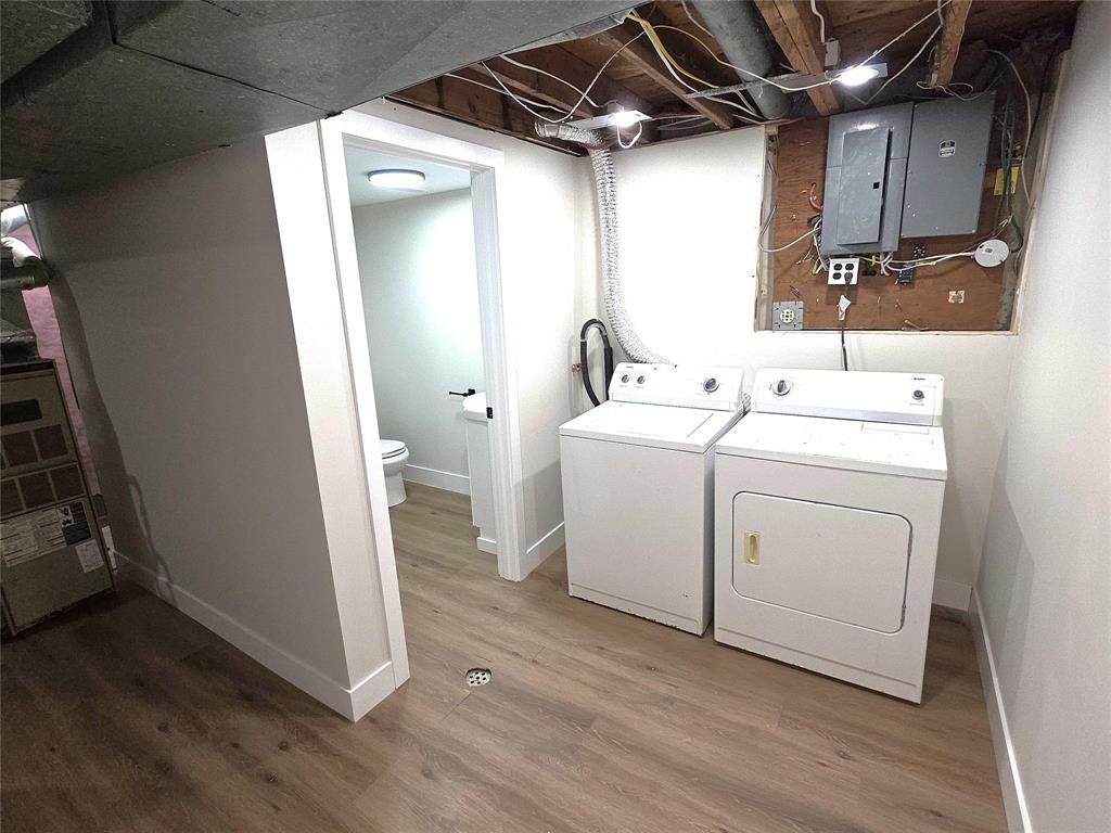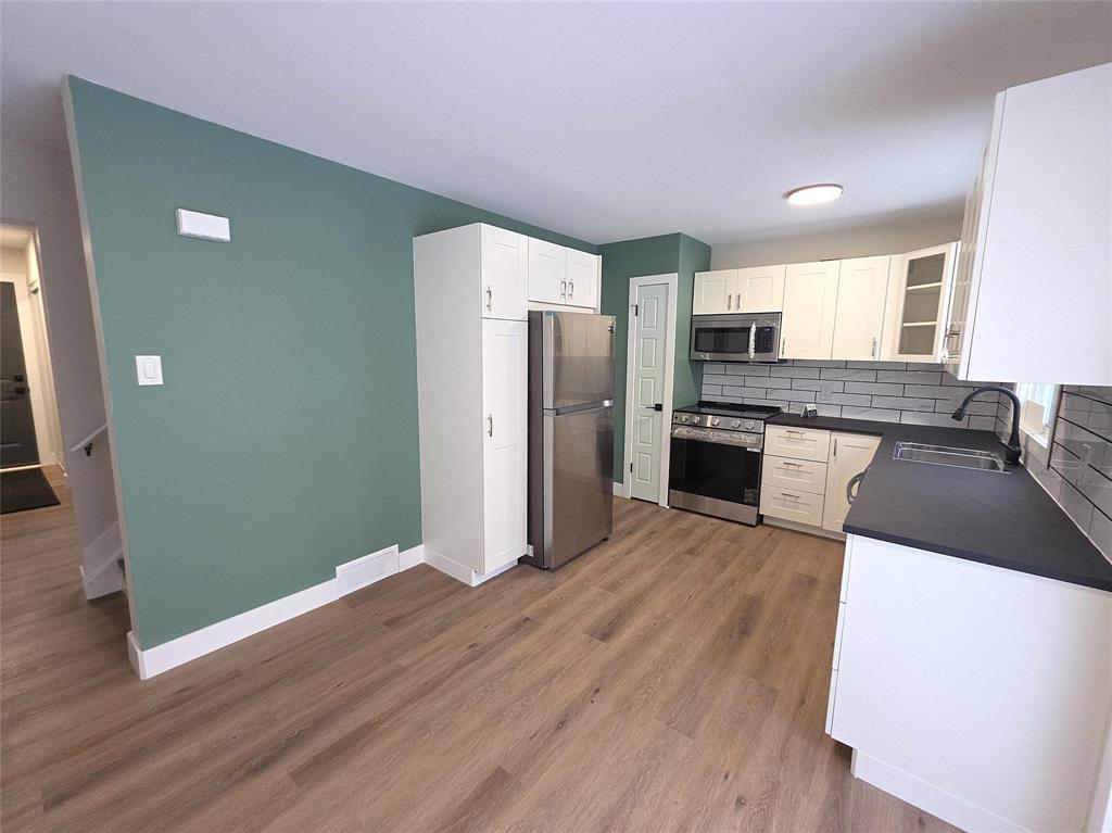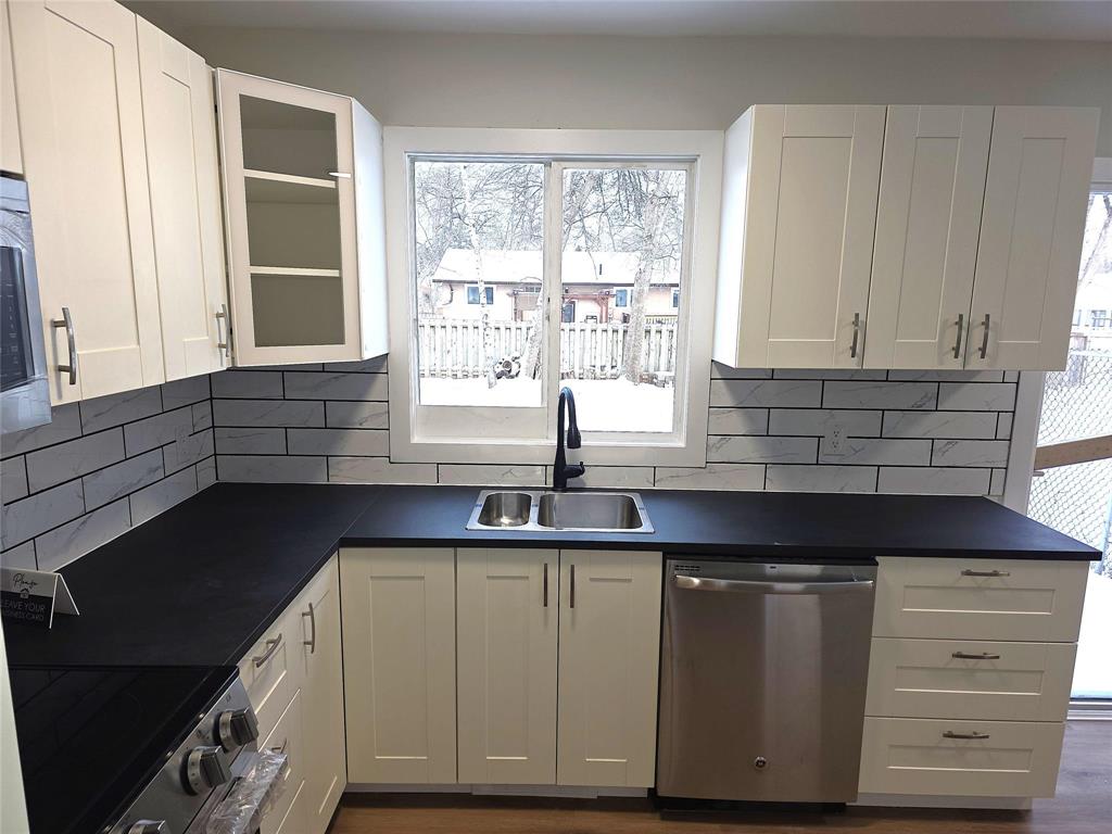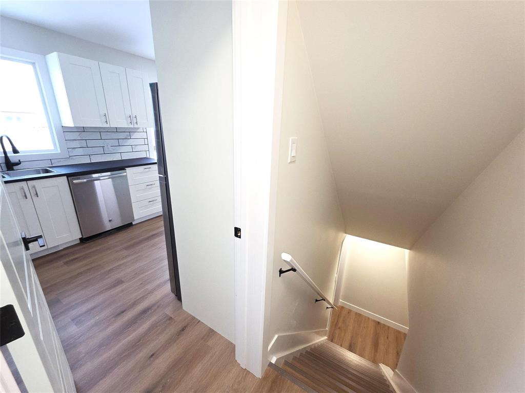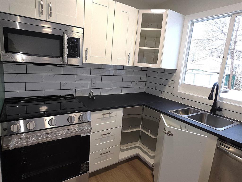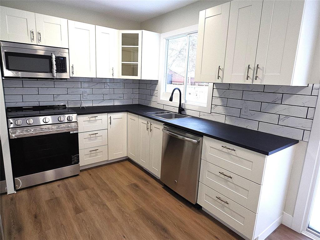 Beautifully updated 3-bedroom side-by-side home with extensive recent renovations. Freshly painted with new vinyl plank flooring throughout, plus all new interior doors, window casings, and baseboards. The bright, newly renovated white kitchen features a lazy Susan, multiple drawers, a spacious pantry, stylish backsplash tiles, and stainless steel appliances, including an over-the-range microwave. The kitchen offers convenient access to the backyard through the patio door. The bathroom includes a soaker tub with tile finishes. The home also boasts a bright and spacious living room, along with all new electrical fixtures, including updated switches and plugs. Major exterior updates include roof shingles, soffits, and fascia (2017). The basement offers a good-sized rec room and a 3-piece bathroom. Additional features include a 60-gallon hot water tank (2025), front driveway, fenced yard, and patio area. Shows very well!