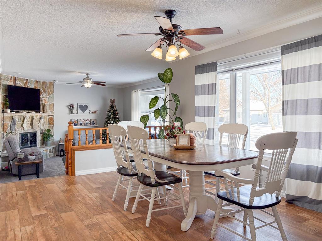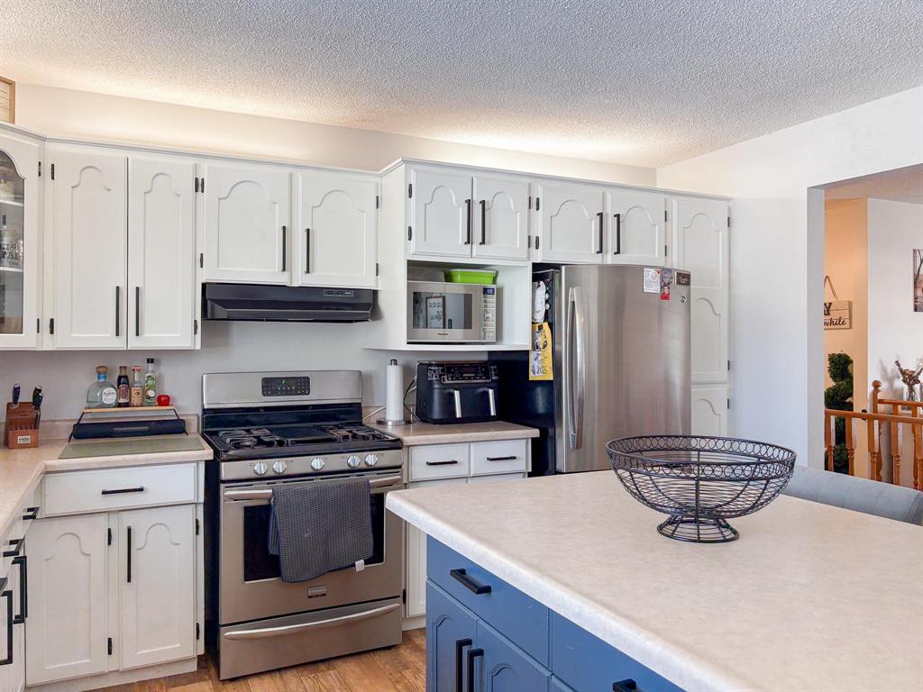 Offering an impressive 1,800sf on the main level alone, this home is truly a host’s dream. The main floor welcomes you with a painted white kitchen featuring a gas stove, island & updated hardware, with a formal dining area that overlooks the sunken family room. A cozy breakfast nook provides access to the composite back deck, which overlooks the fenced backyard complete with an aggregate stone firepit area & shed. The main level also includes a spacious primary BR with walk-in closet & 2pc ensuite, a full 4pc bath, 2nd BR, & a main-floor laundry room with a 2pc washroom. Downstairs the finished & newly refreshed bsmt (2025 updates: flooring, paint, baseboards & wainscotting) offers a generous rec room, 2 BRs, 3-pc bath w/ traditional cedar sauna, plus 2 spacious flex rooms for a potential gym, office, play area or future BRs (no current window). Noteworthy features: 23.5’ x 34’ finished & heated garage with epoxied floor, ABS plumbing, triple-pane PVC windows, & updated shingles. Fridge (x2), stove, d/w, washer & dryer included.