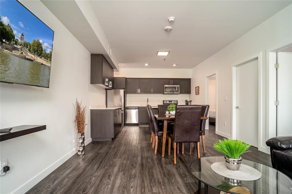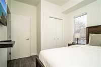 This impeccably designed 3 bedroom, 2 bathroom residence delivers 1,005 sq feet of stylish and functional living space. The bright open concept layout is enhanced with huge windows that flood the home with natural light and 9 foot ceilings. The modern kitchen is a perfect blend of luxury and practicality with its stainless steel appliances, quartz countertops, and soft-close cabinetry. In suite laundry, private balcony, ample in unit storage and heated indoor parking, an invaluable advantage during our winters. Condo fees include all utilities; hydro, heat and water. Plus it is pet friendly (dogs or cats, combined 40 lb limit). Easy access to public transit and close to parks, shops, restaurants, all amenities. If looking for an investment property, it was previously rented fully furnished for $5,550/month, with previous long-term corporate leases (6+ months) at $3,750+. Option to purchase fully furnished makes this an ideal turnkey investment. Whether looking for yourself or as a rental, this is an outstanding blend of modern living combining style, comfort, convenience, and exceptional value!
